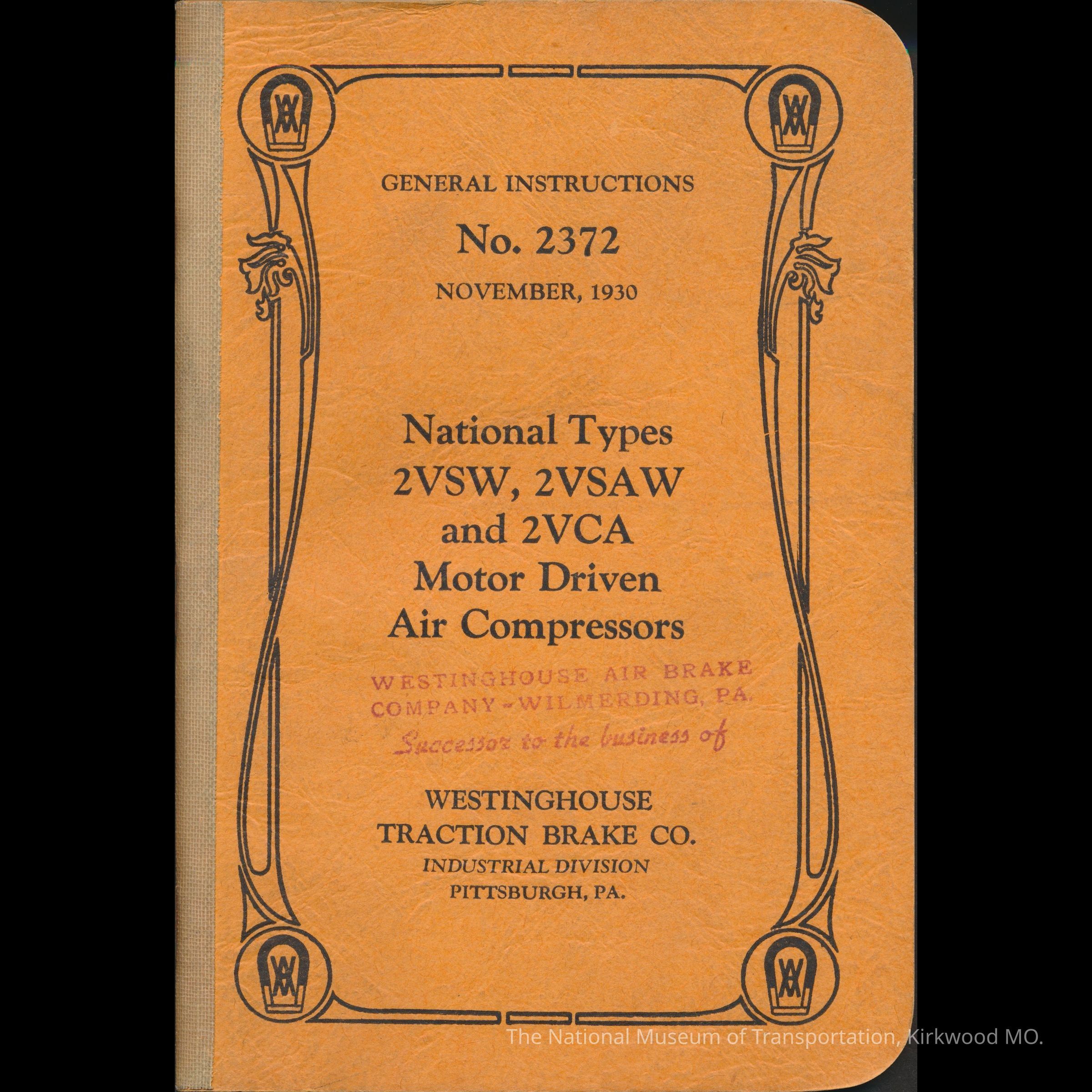 General Instructions No. 2372, November 1930: National Types 2VSW, 2VSAW and 2VCA Motor Driven Air Compressors (With Separate Control).Entry/Object ID