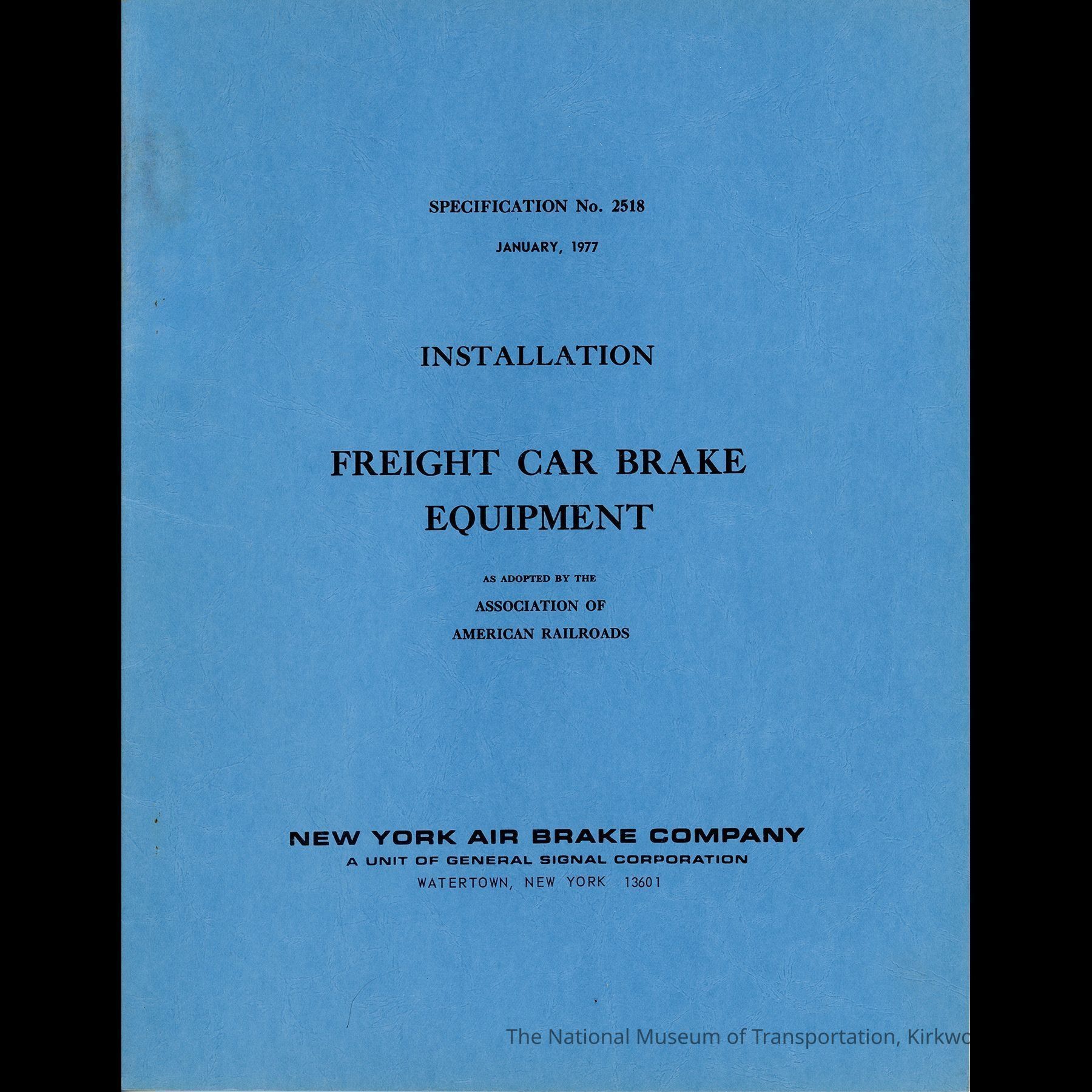 Specification No. 2518, January, 1977.Collection