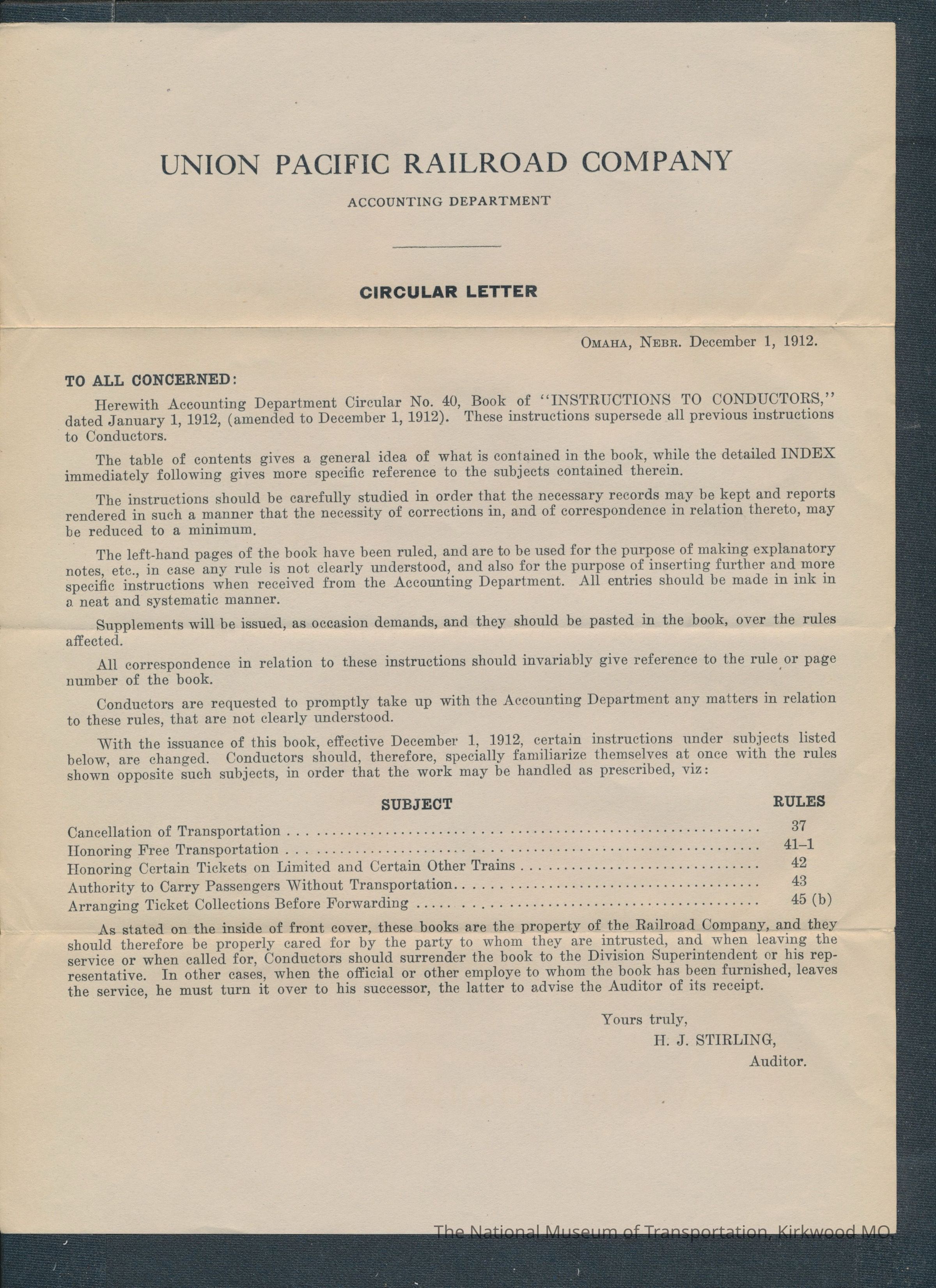 Instructions to Conductors (Cancels All Previous Instructions)Entry/Object ID