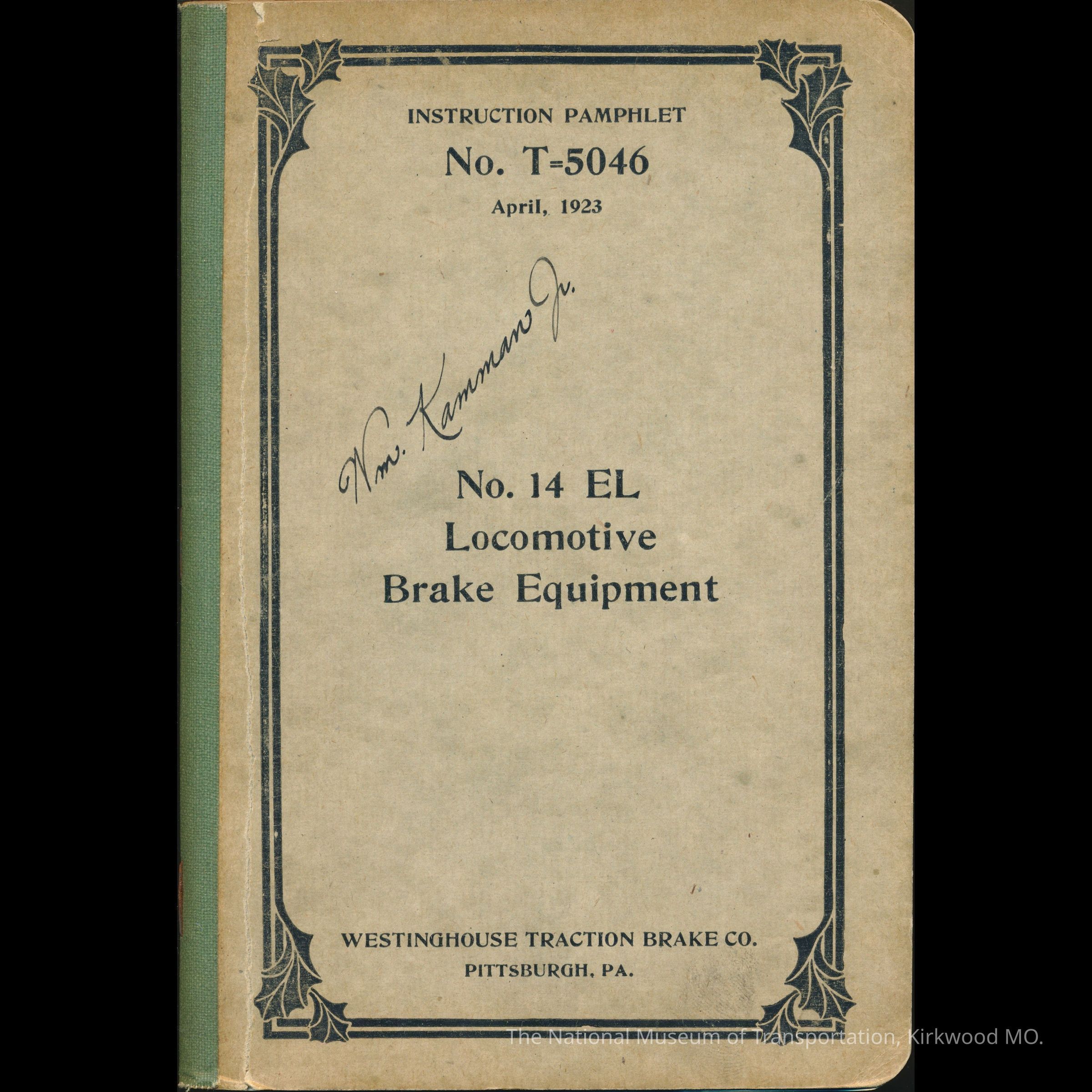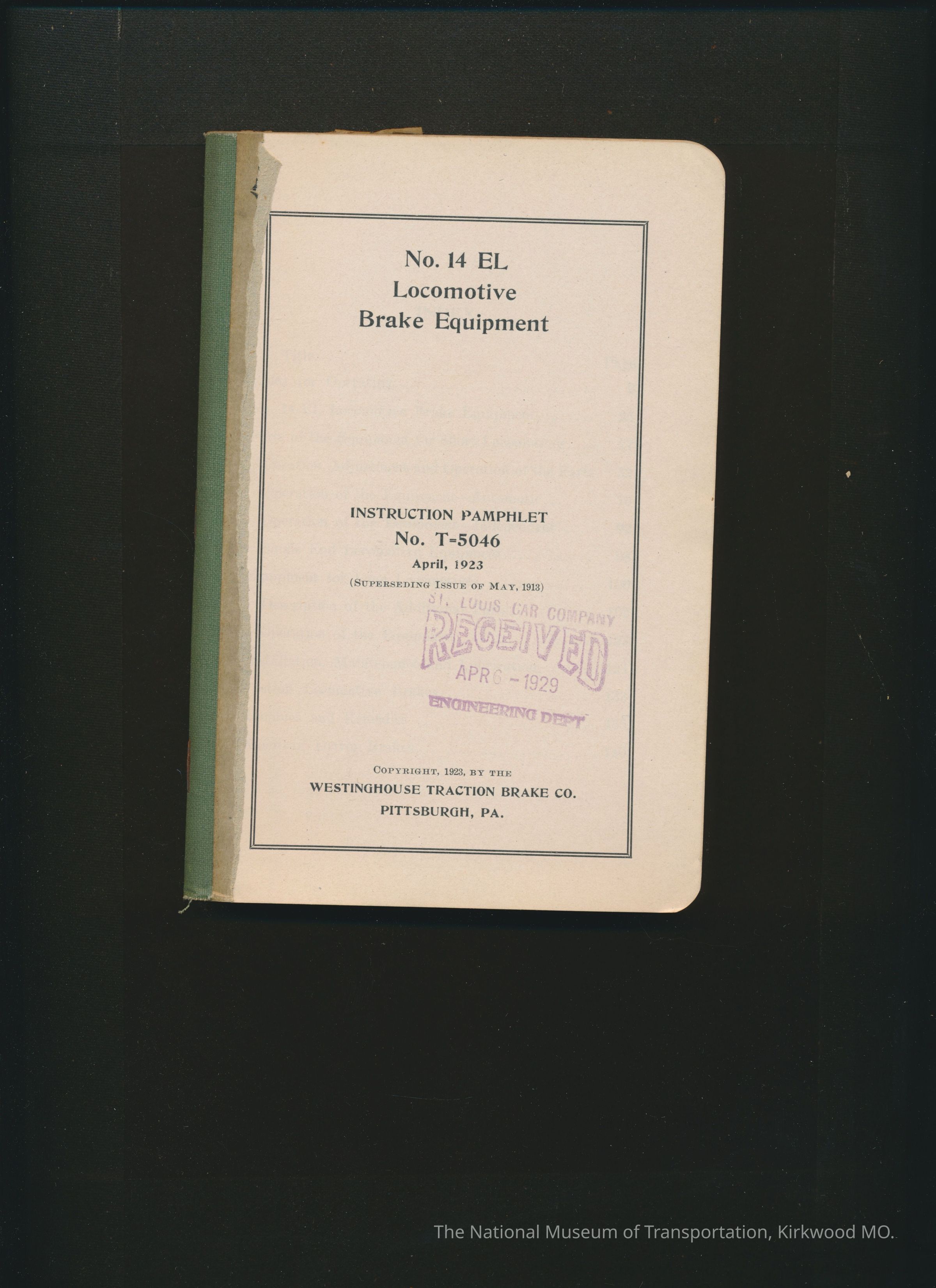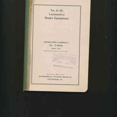 Instruction Pamphlet No. T 5046, April 1923: No. 14 EL Locomotive Brake Equipment.Entry/Object ID