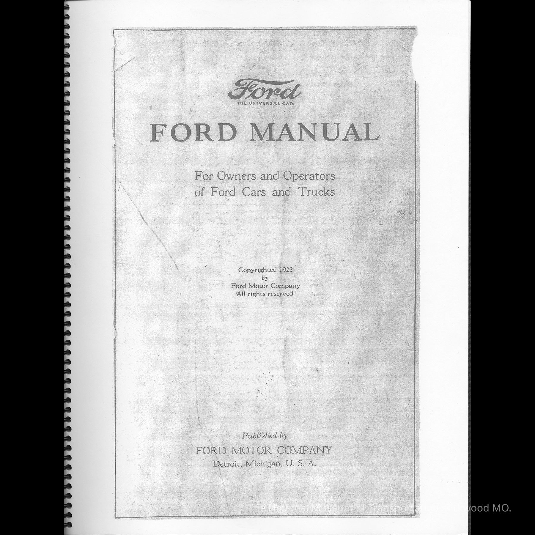 Ford Manual For Owners and Operators of Ford Cars and Trucks. (PHOTOCOPY)Entry/Object ID