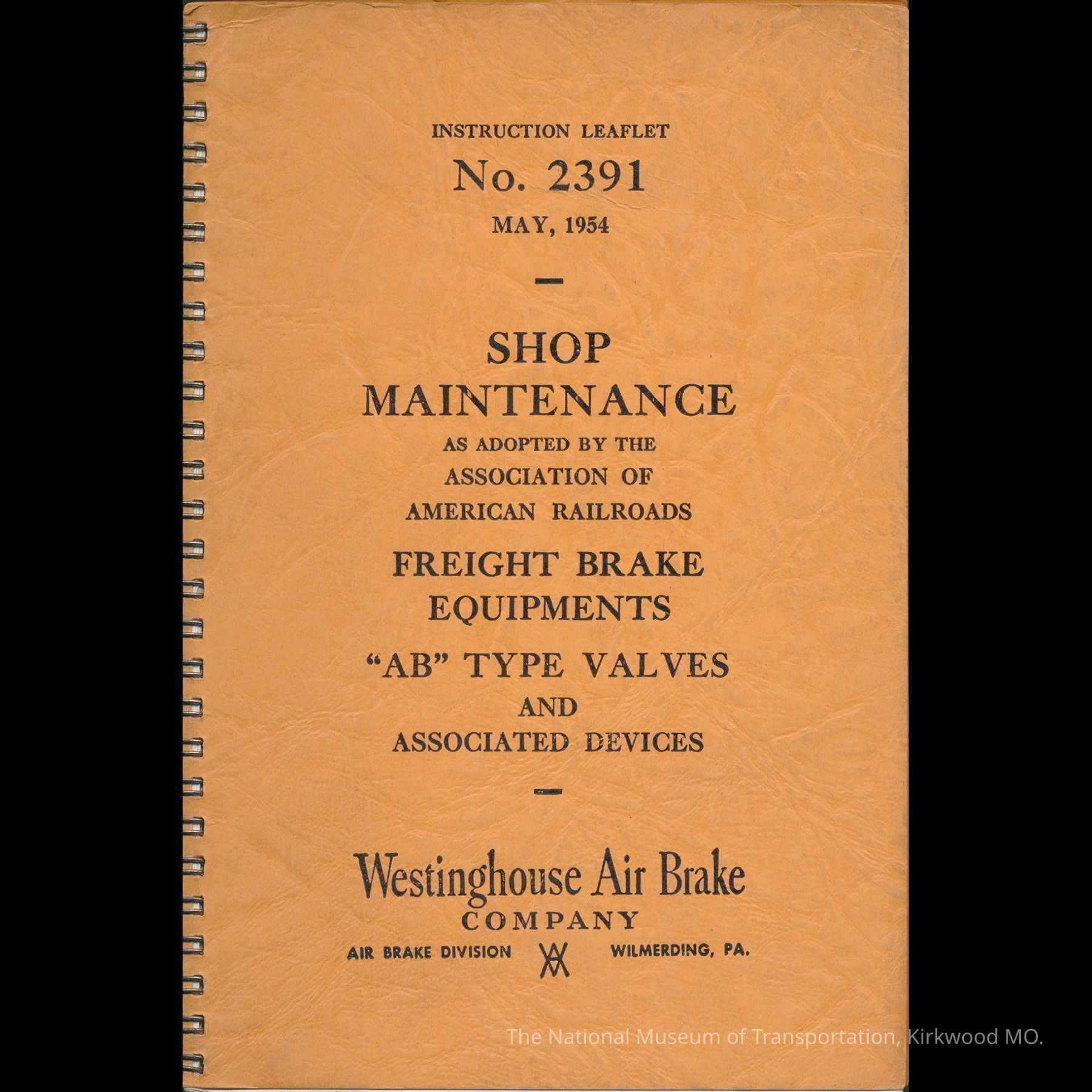Instruction Leaflet No. 2391, May, 1954: Shop Maintenance, Freight Brake Equipments, "AB" Type Valves and Associated Devices.Entry/Object ID