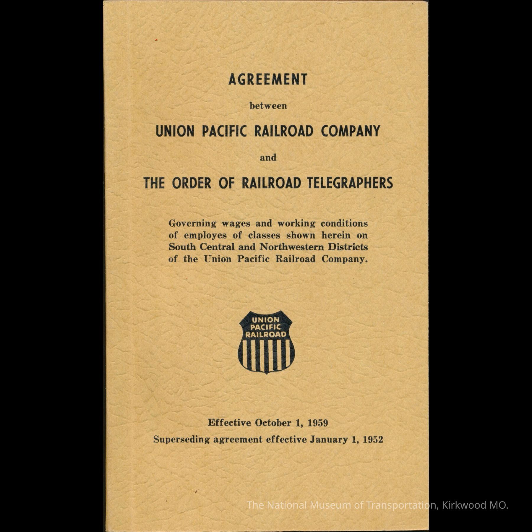 Agreement Between Union Pacific Railroad Company and The Order of Railroad Telegraphers.Entry/Object ID