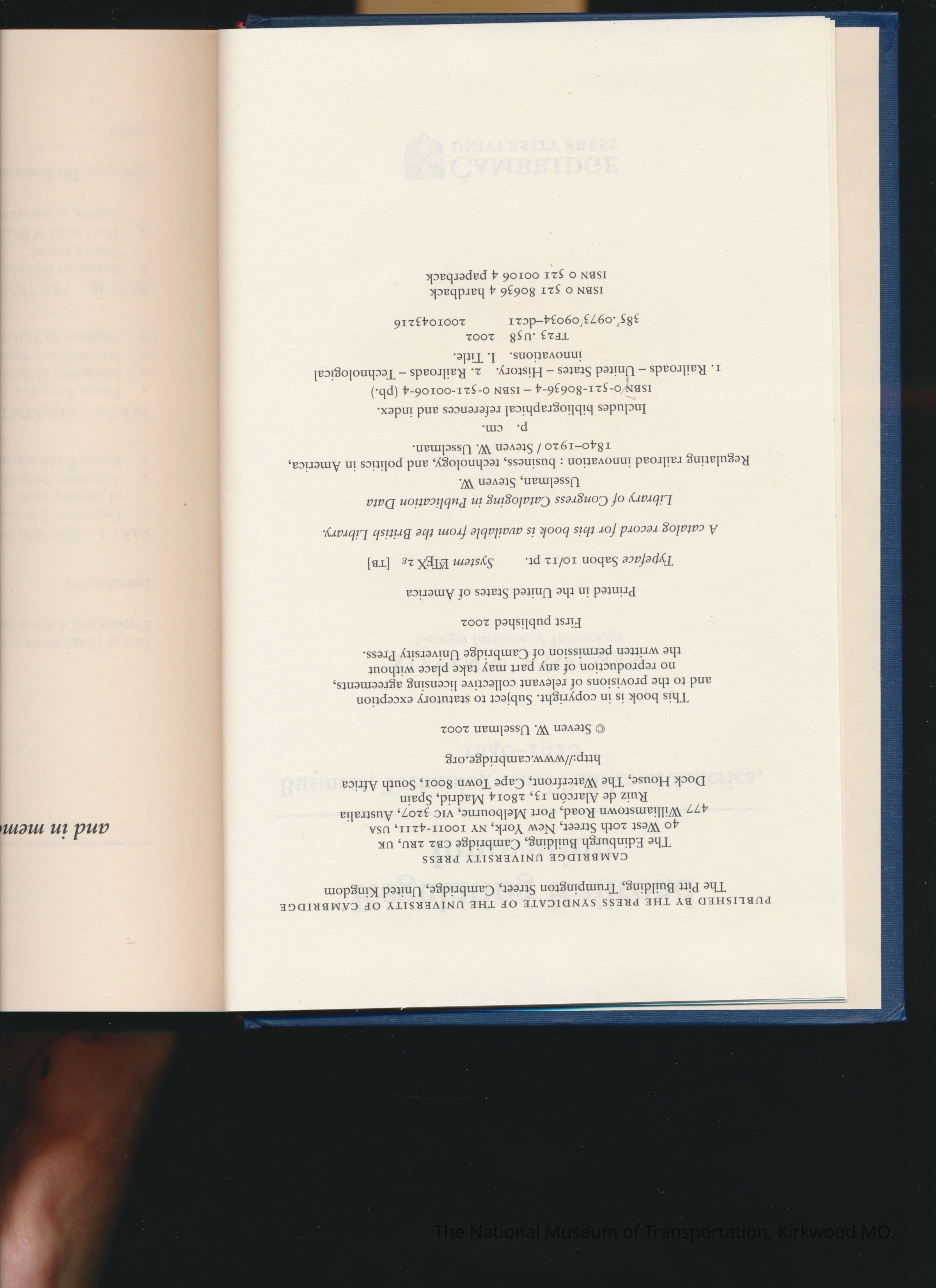Regulating Railroad Innovation. Business, Technology, and Politics in America, 1840-1920.Entry/Object ID