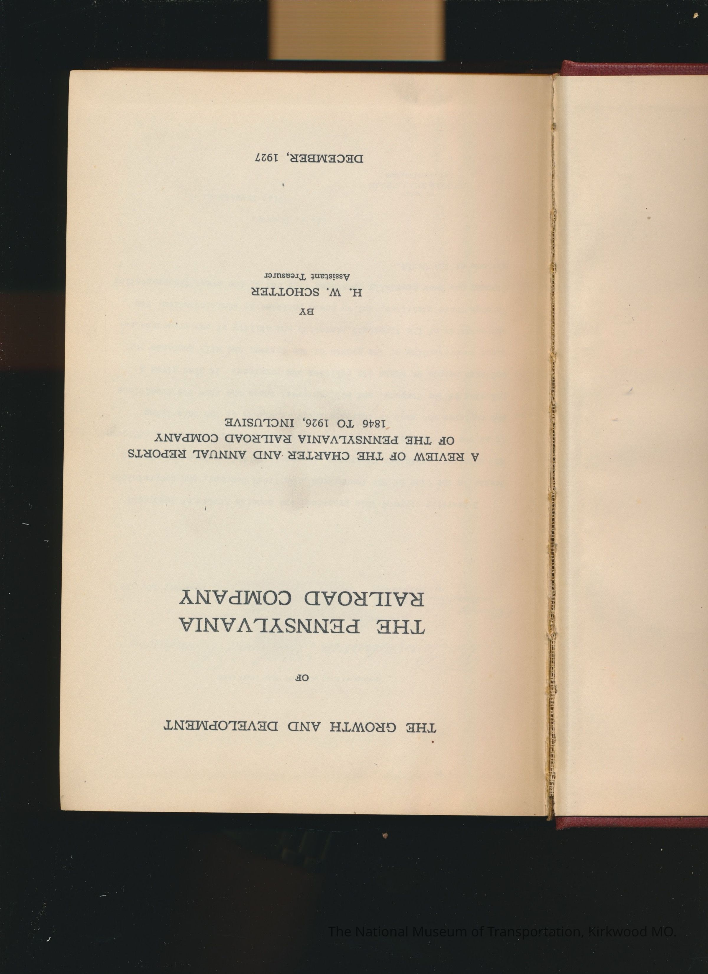 Growth and Development of the Pennsylvania Railroad Company, The, 1846-1926. December, 1927.Entry/Object ID