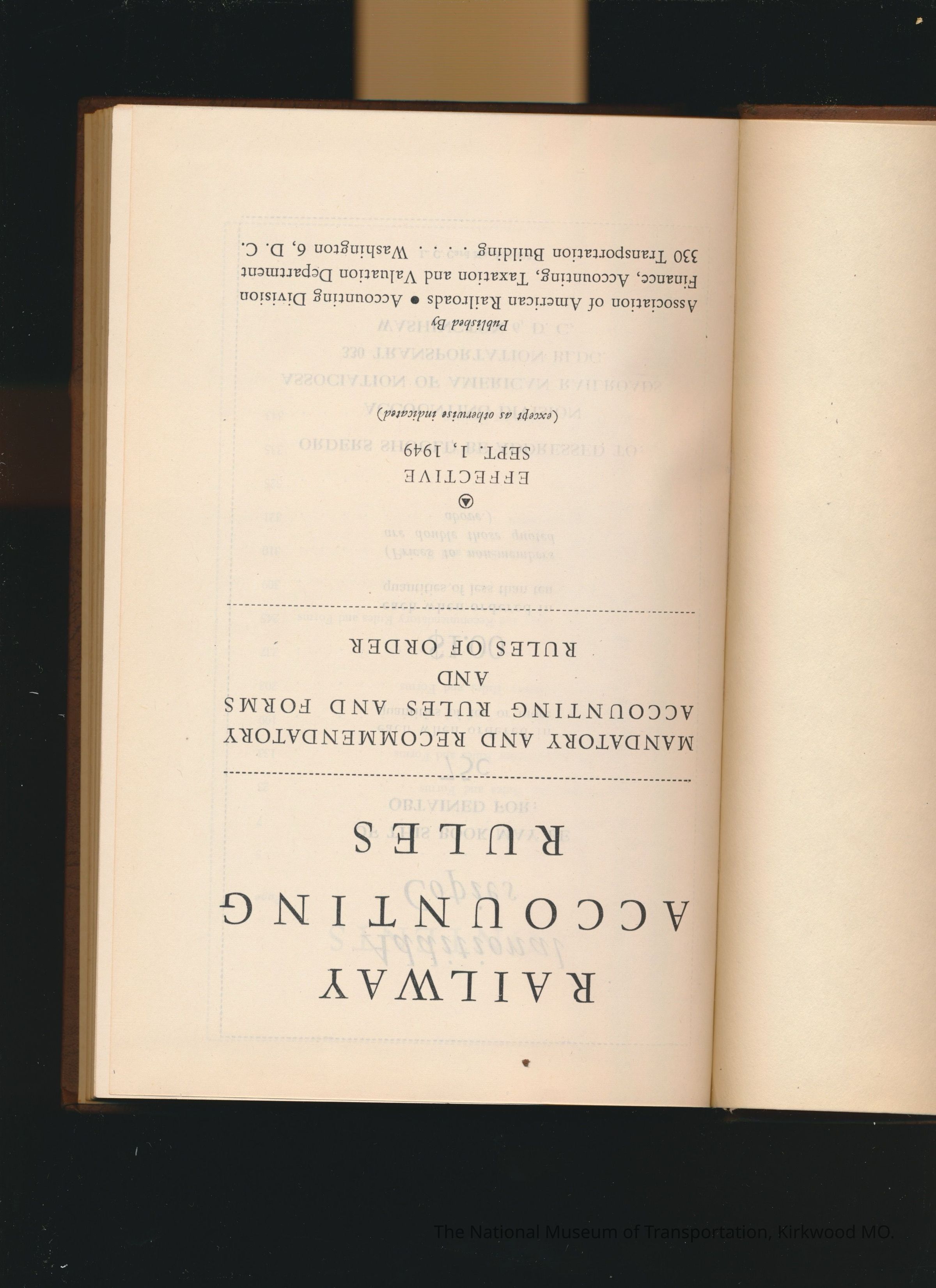 Railway Accounting Rules. Effective Sept. 1, 1949Entry/Object ID