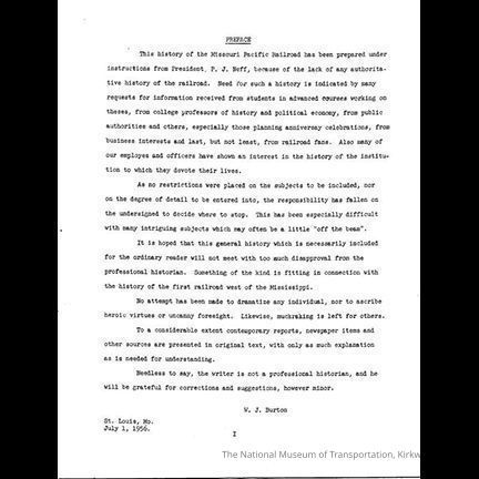 History, Mo.Pac. Lines by W.J. Burton - July 1, 1956Entry/Object ID