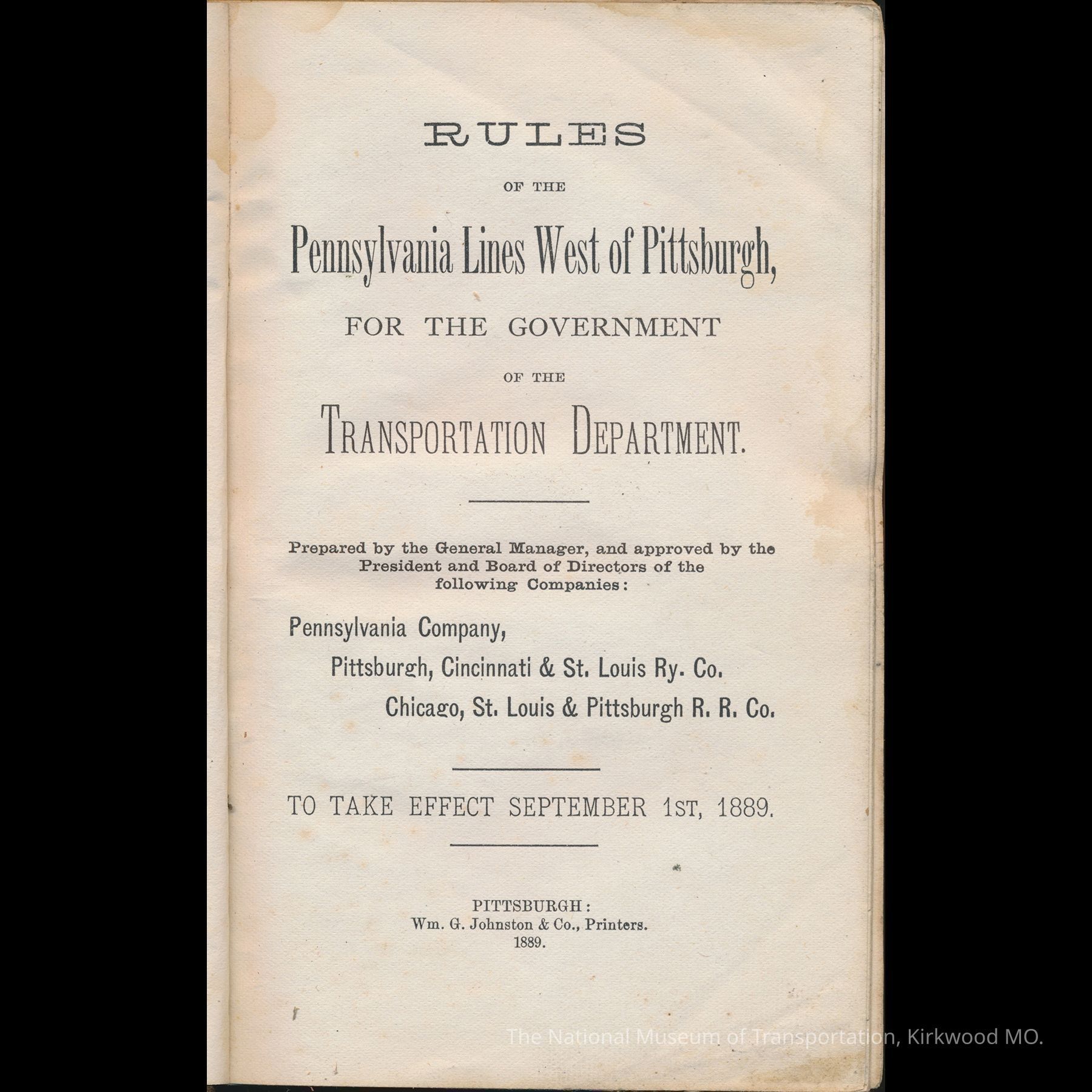 Rules of the Pennsylvania Lines West of Pittsburgh, for the Government of the Transportation Department.Entry/Object ID