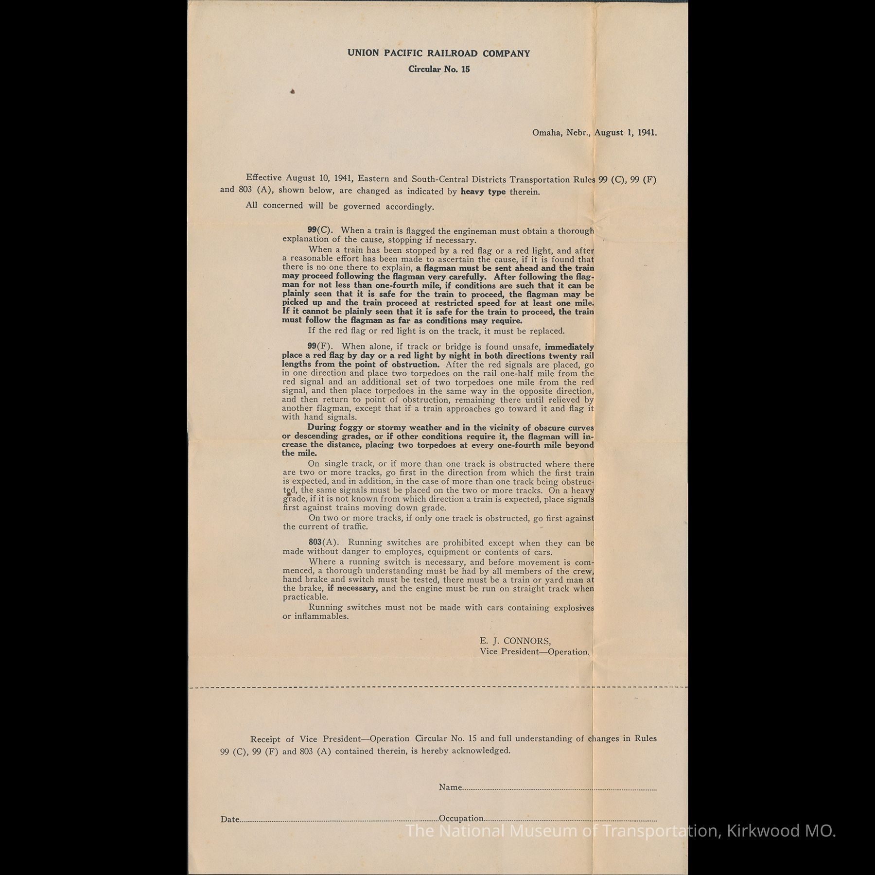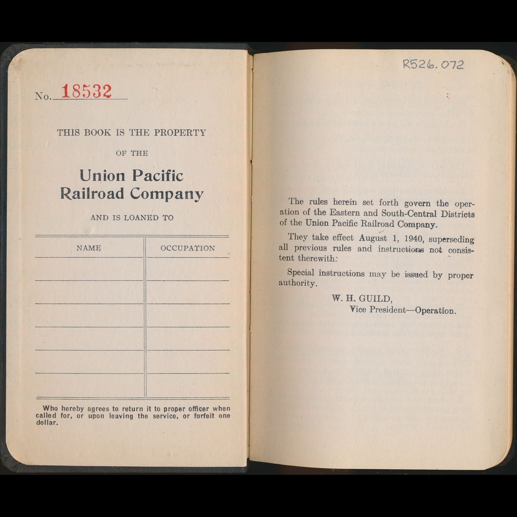 Rules and Instructions of the Transportation Department. Effective August 1, 1940.Entry/Object ID