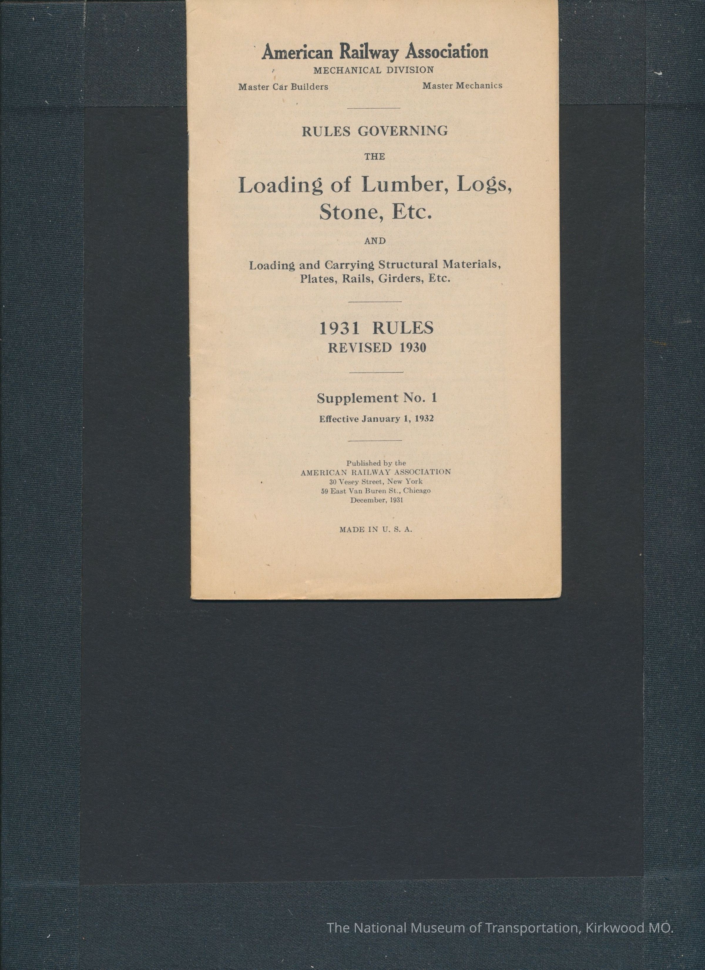 Rules Governing the Loading of Lumber, Logs, Stone, Etc. and Loading and Carrying Structural Materials, Plates, Rails, Girders, Etc.Entry/Object ID