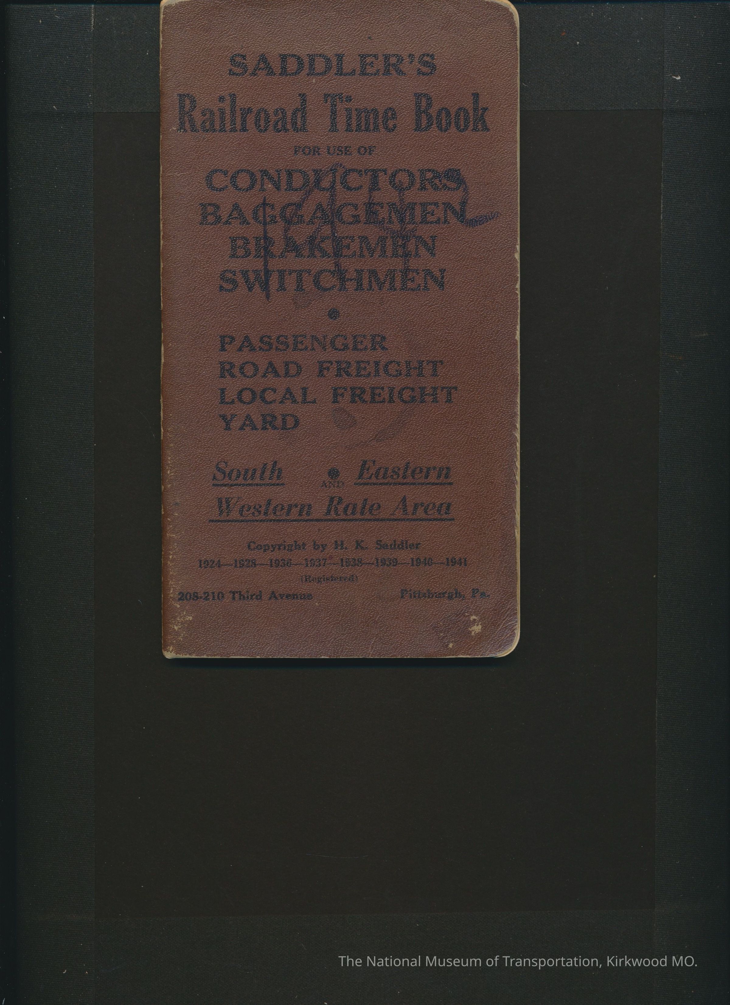 Saddler's Railroad Time Book for Use of Conductors, Baggagemen, Switchmen.Entry/Object ID