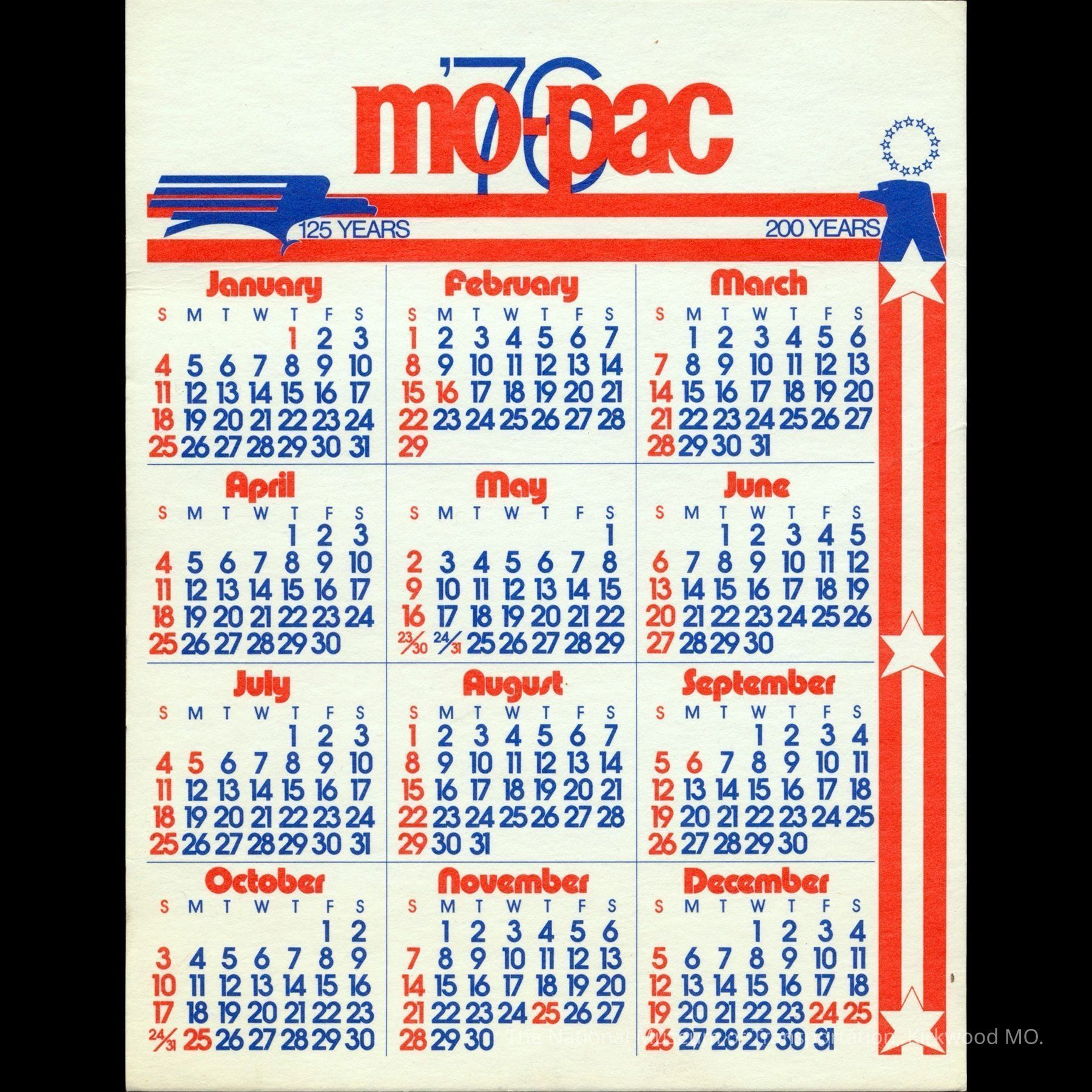 1976 MoPac Calendar.Entry/Object ID