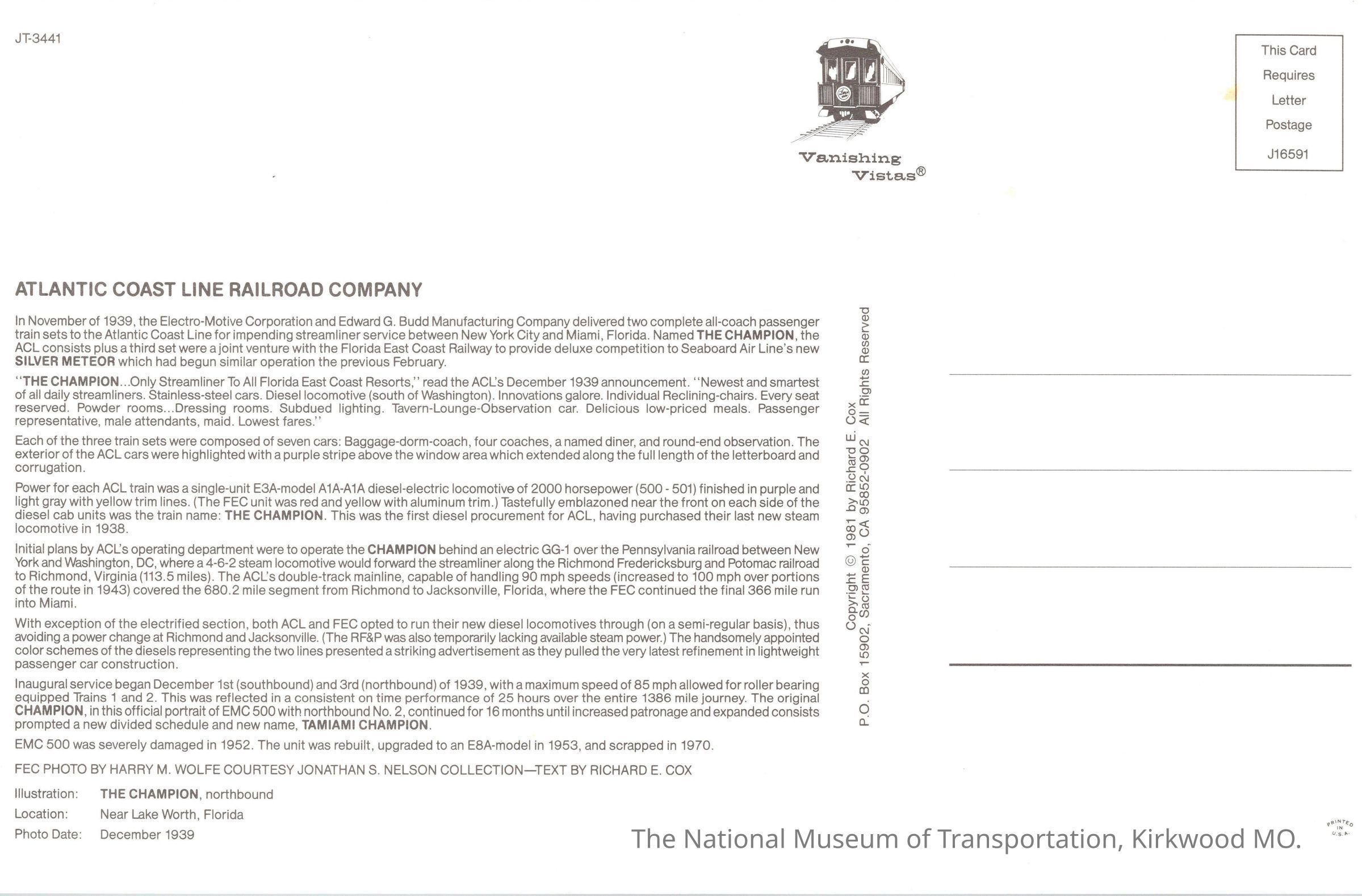 ACL No. 500, "The Champion," Northbound.Entry/Object ID