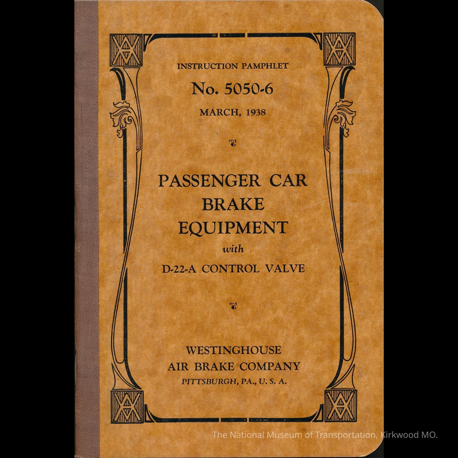 Instruction Pamphlet No. 5050-6, March 1938: Passenger Car Brake Equipment with D-22-A Control Valve.Entry/Object ID