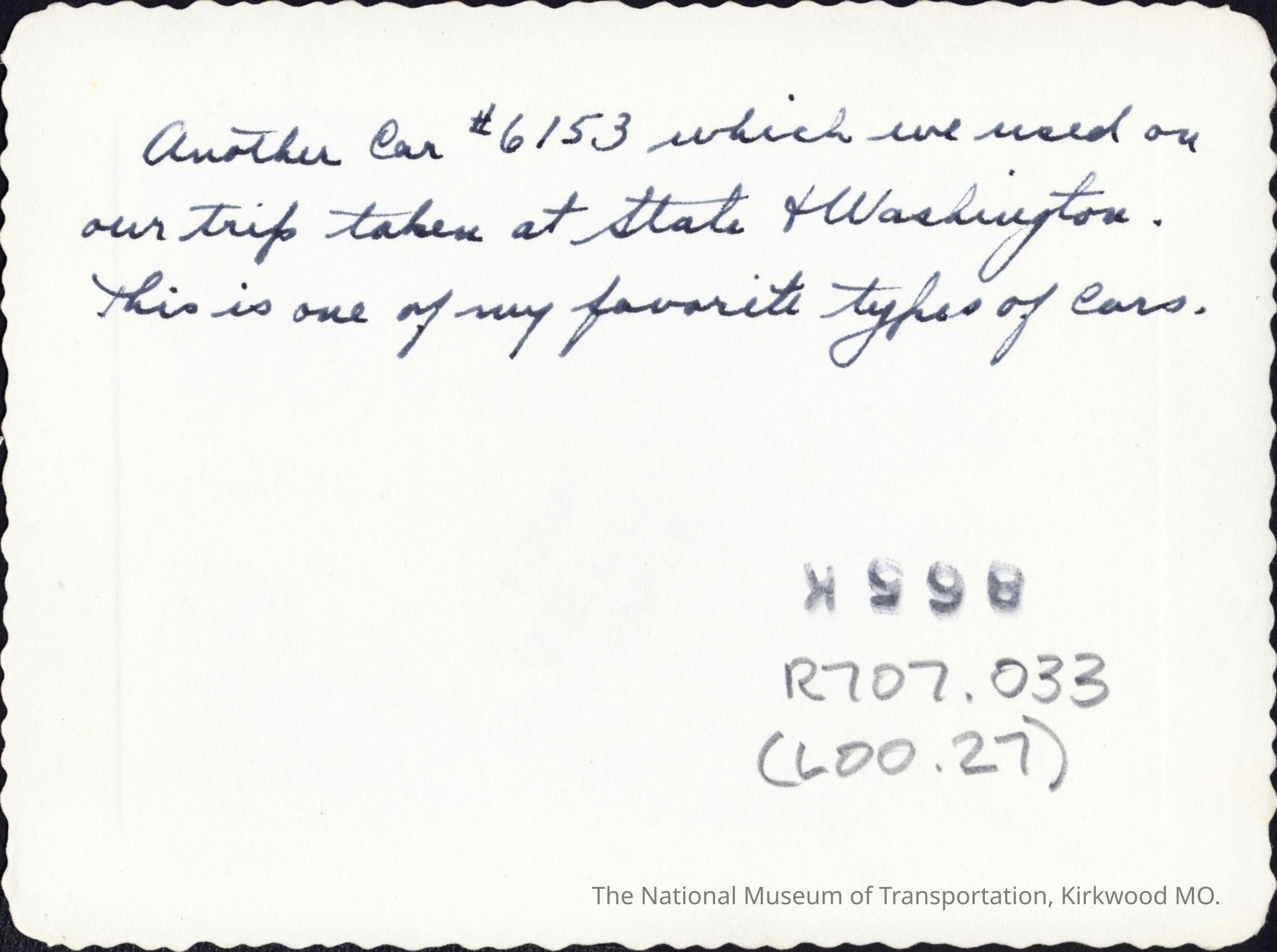 Another Car #6153 which we used on our trip taken at State & Washington. This is one of my favorite types of cars.Language