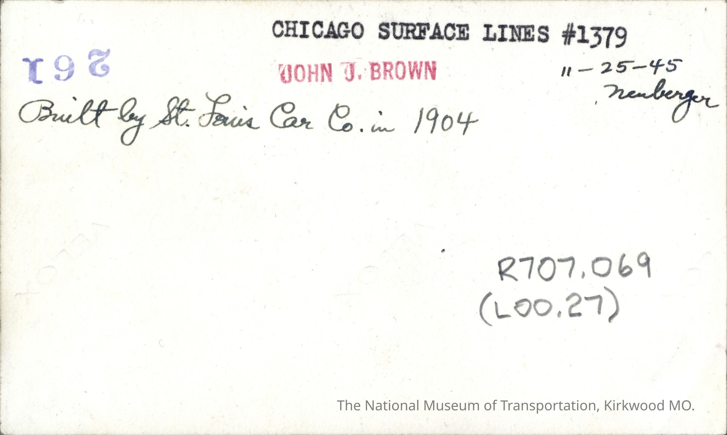 Chicago Surface Lines No. 1379.Entry/Object ID