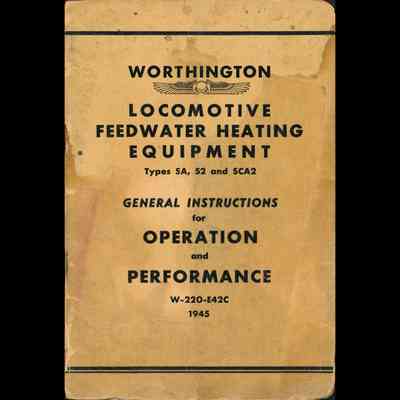 Worthington Locomotive Feedwater Heating Equipment. Types SA, S2 and SCA2. General Instructions for Operation and Performance. W-220-E42B.