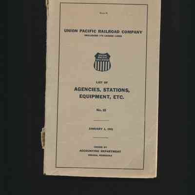 Union Pacific List of Agencies, Stations, Equipment, Etc., January 1, 1951