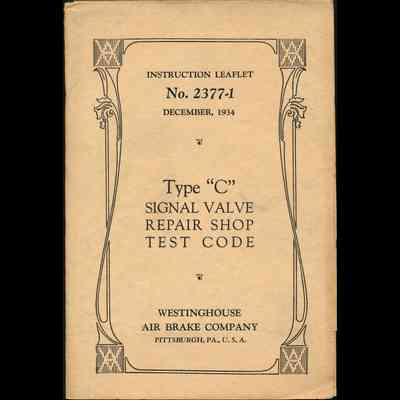 Type "C" Signal Valve Repair Shop Test Code.