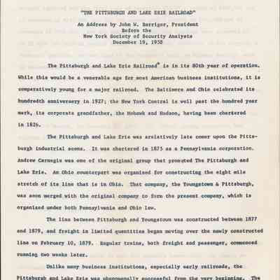 Address - "The Pittsburgh and Lake Erie Railroad"