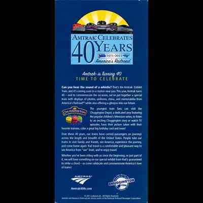 Amtrak Advertising Card - Amtrak Celebrates 40 Years. 1971-2011. America's Railroad.