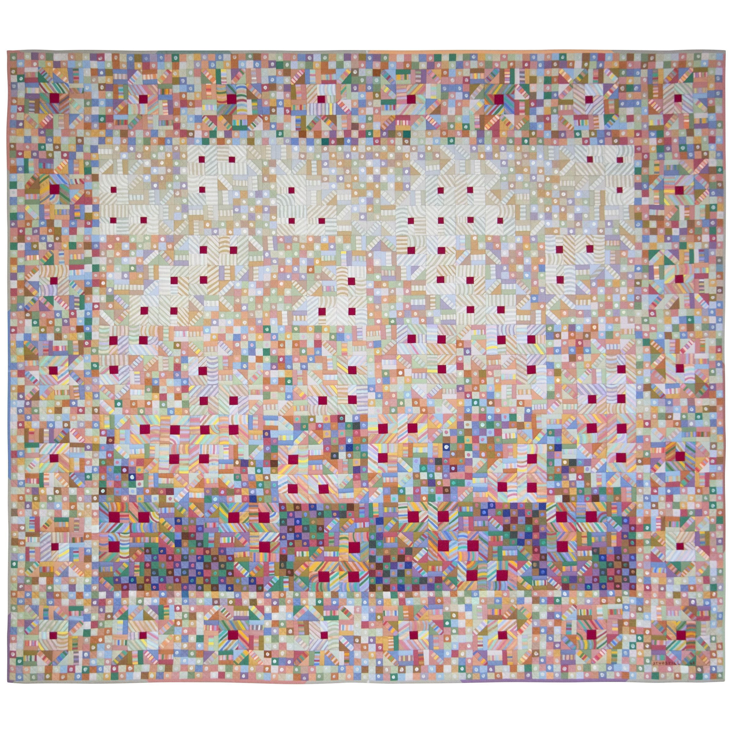 "Each of my quilts is a study in light. I like to play with color gradations, using hand-dyed and commercial fabrics. The surface paint not only creates a random pattern but also helps ease the transition from color to color. I am inspired by landscape views and vistas, fields of anything, all the quilts I've ever seen, and looking at my boxes of colored material. I like all that pattern; I like the way it moves. It's like the background buzz on a TV screen, without form or meaning. To me, that shimmering quality is the mark of a successful quilt."