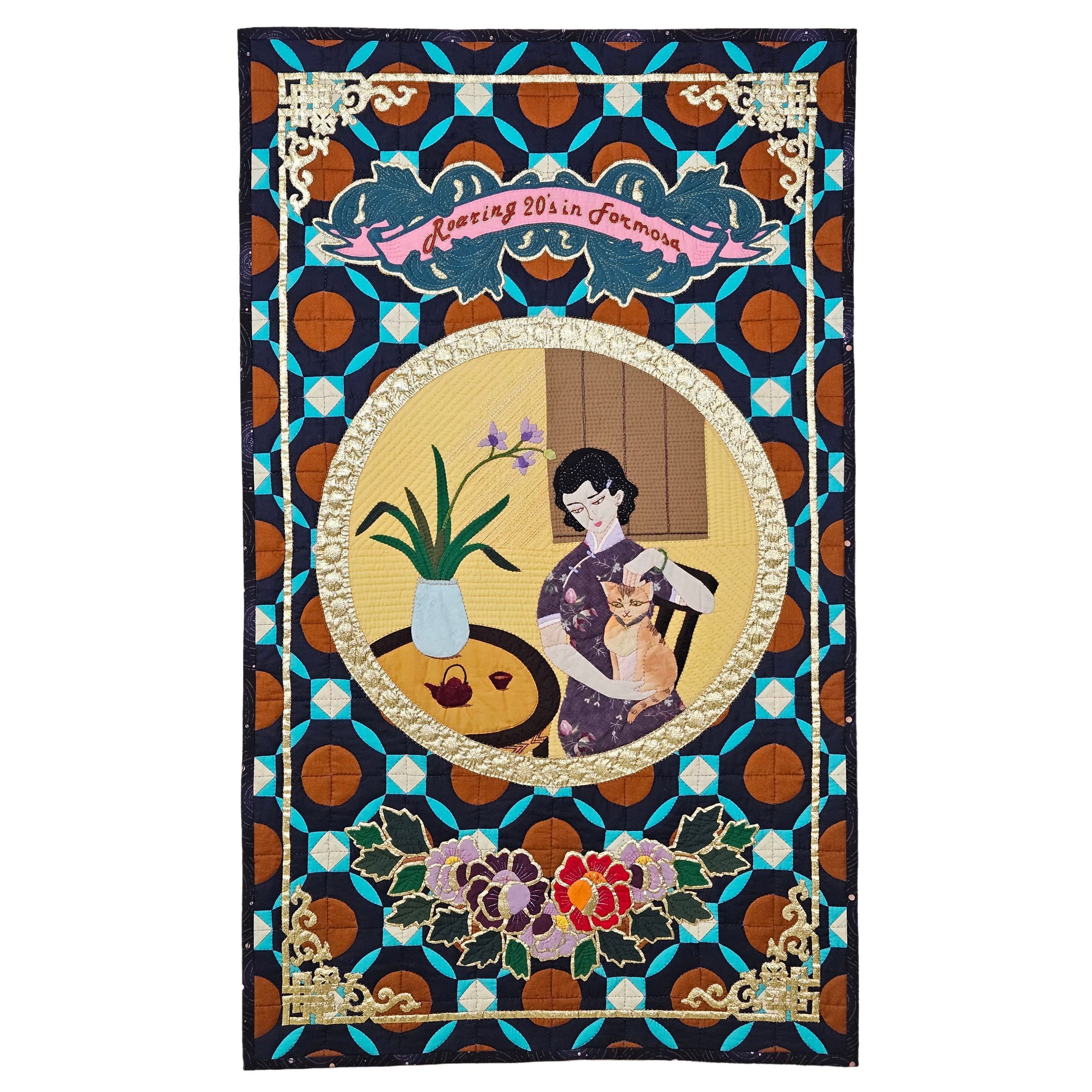 The work features women with short hair, fitted clothing, exuding independence and confidence. The base pattern of glazed tiles symbolizes economic prosperity, while peonies represent a life of prosperity. and the golden stripes symbolize the pursuit of gorgeousness. This is my attempt to convey Taiwan in the 1920s.