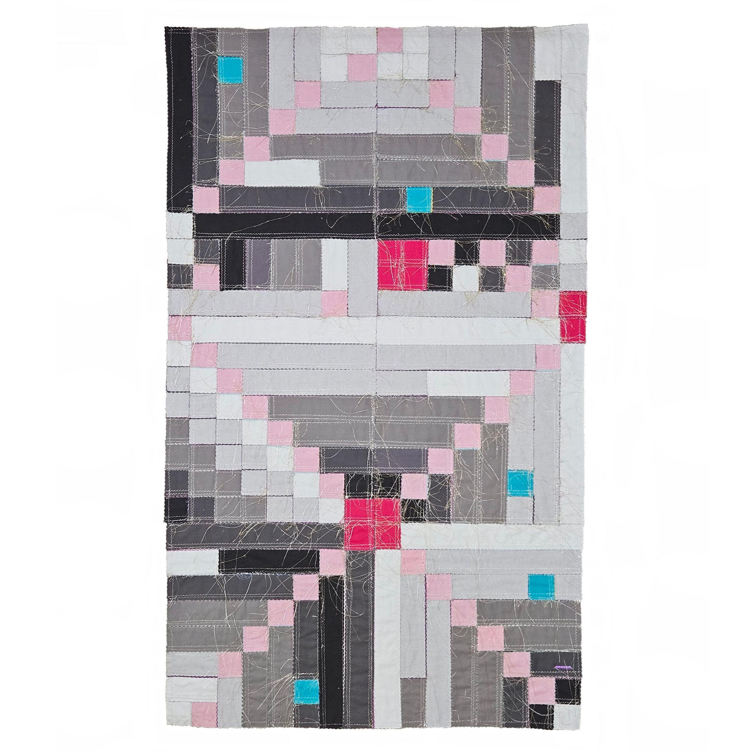 My deconstructed art quilt technique features a sandwich of layered fabrics (visible at the edges of each "log"), zigzag machine stitching, and intentionally raw edges and thread ends that reveal both the process and product of sewing.Note Type