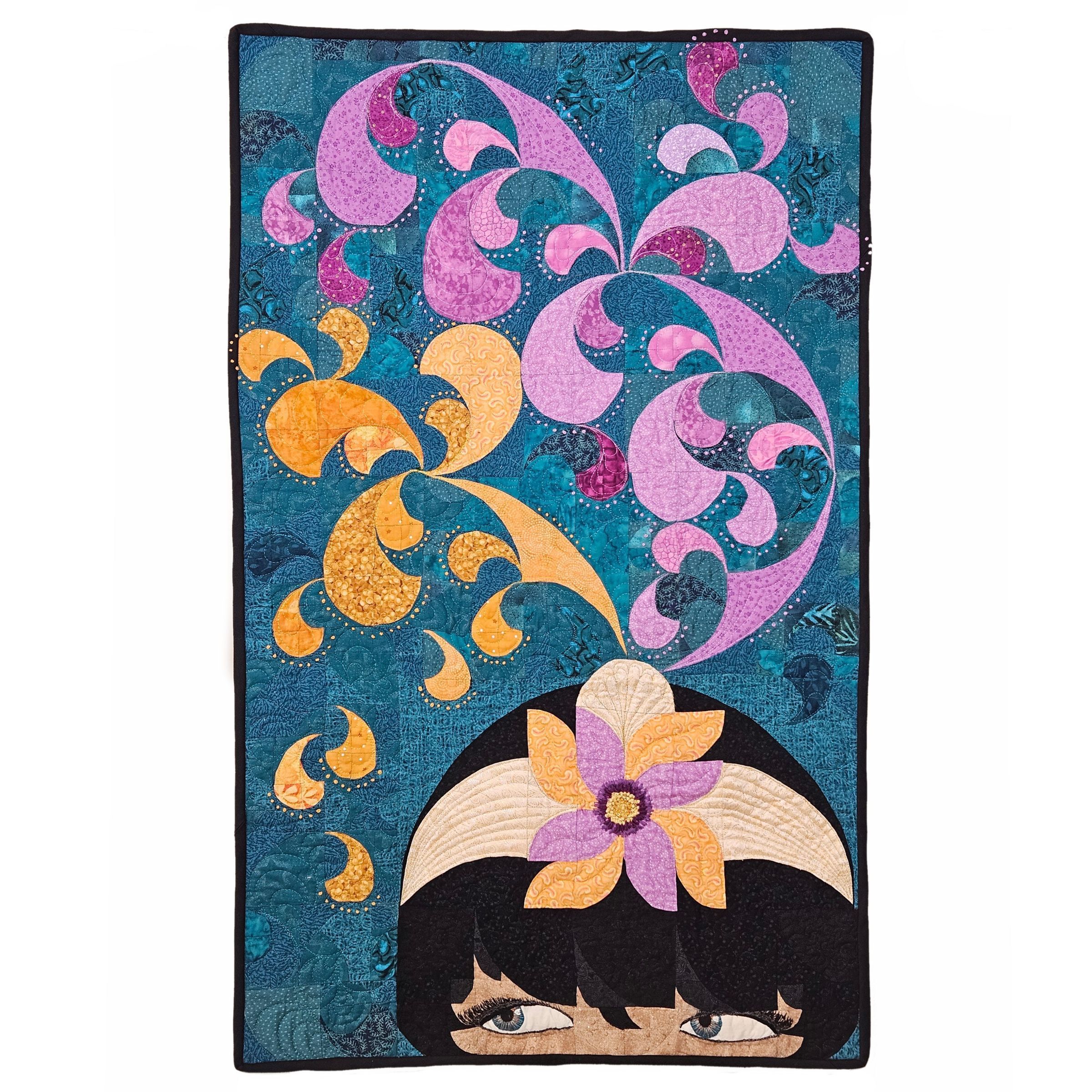 This quilt was machine pieced and machine quilted on a vintage Kenmore, with the exception of one hand-sewn applique and minimal hand quilting on the face. All embroidery was done by hand. Every block in this quilt is the same "old favorite" known as the “drunkard's path” – one in which the radius of the quarter circle equals the side of the square (in the vernacular – “maximum pie and minimal crust”). The only differences among the blocks in this quilt (besides color) are their sizes – there are hundreds of 1” x 1” blocks, scores of 2” x 2” blocks, about a dozen each of 3”x3” and 4”x4” blocks, and a few 4”, 5”, 6”, 8” and 9” square blocks. Since so many of the smaller blocks are nested inside larger blocks (which themselves are nested in even larger blocks), it was way too confusing for me to accurately count how many of each size are in the quilt; hence the estimates.Note Type