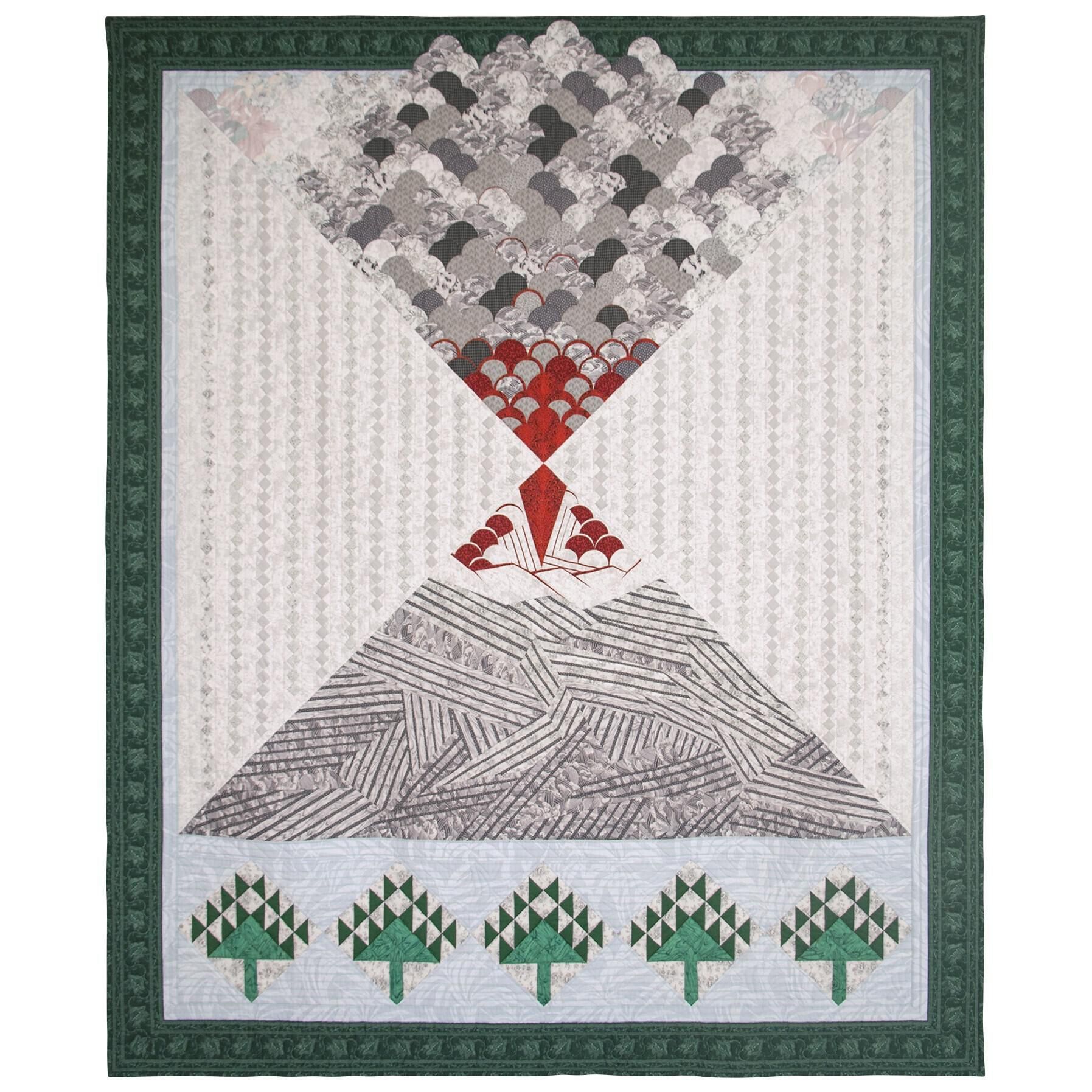 "Mount St. Helens, Did you Tremble? is the fabric scene that is the form of my fancy. It is the image of the words that flew through my mind and became a poem, as I watched the spectacular sunset through the pine trees on the hill near us the night of May 25, 1980, the day of the secondary eruption of Mount St. Helens."