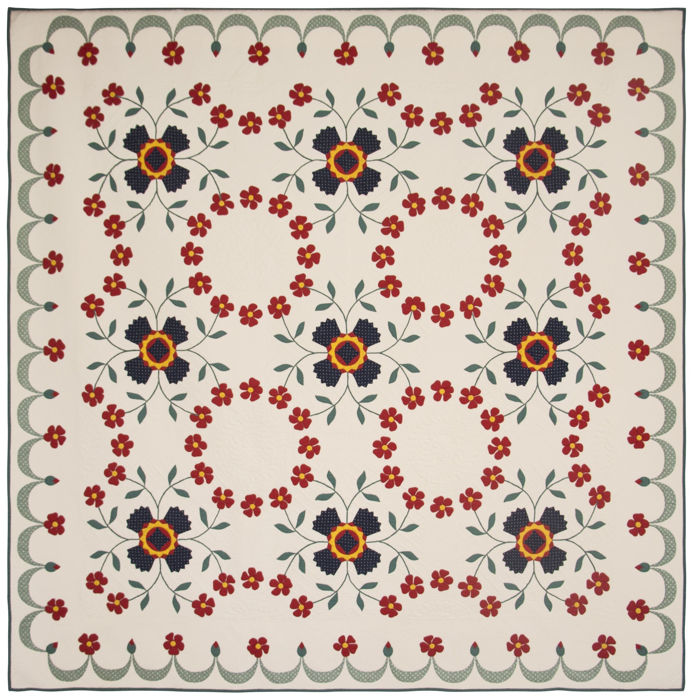 “I started quilting in 1983 after learning how from my grandmother. I began making quilts for shows after my marriage in 1989. The idea for Wild Rose came from a picture of a quilt that was made from the remains of a quilt partially destroyed in the Chicago Fire in 1871.”