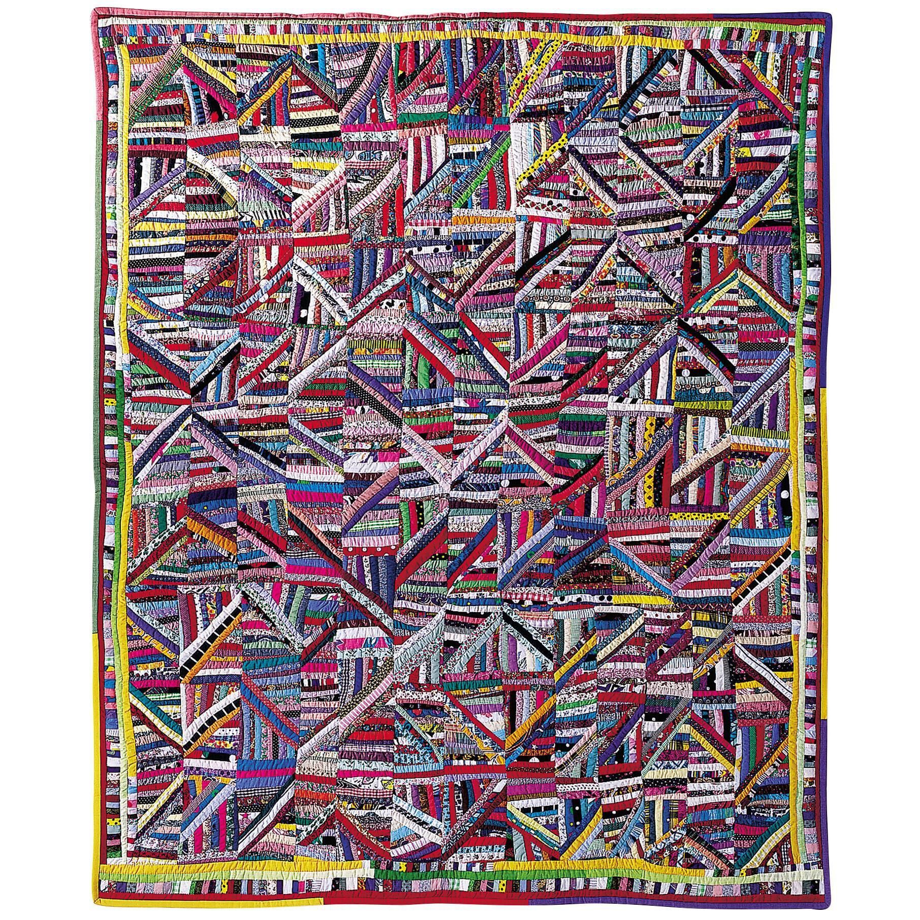 Anna pieces her quilts using no patterns, improvising as she cuts and stitches. She usually pieces eight or nine quilts at a time, and works on a few blocks for two or three of them each evening. Anna comments, “If I didn’t have anything else to do I would just sew. I like working with color. Ideas for designs often come to me during the day while I am working. I’ll think of something and when I get home I fool with it to see how it comes together. Piecing quilts helps me to take my mind off of my troubles.”