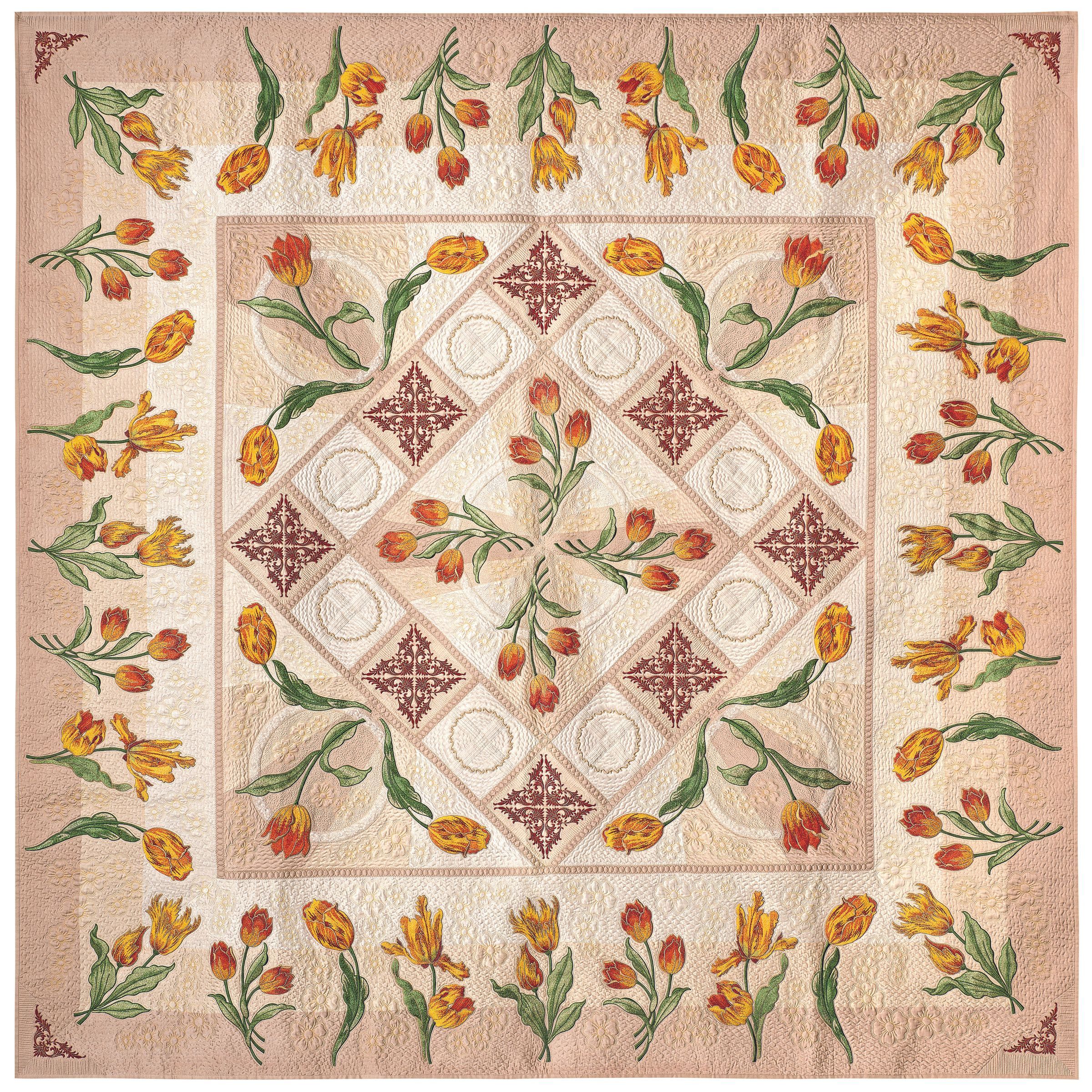 Machine foundation pieced, machine embroidered, double-needle pintucked, shaped lace insertion, decorative machine stitched, free-motion machine quilted