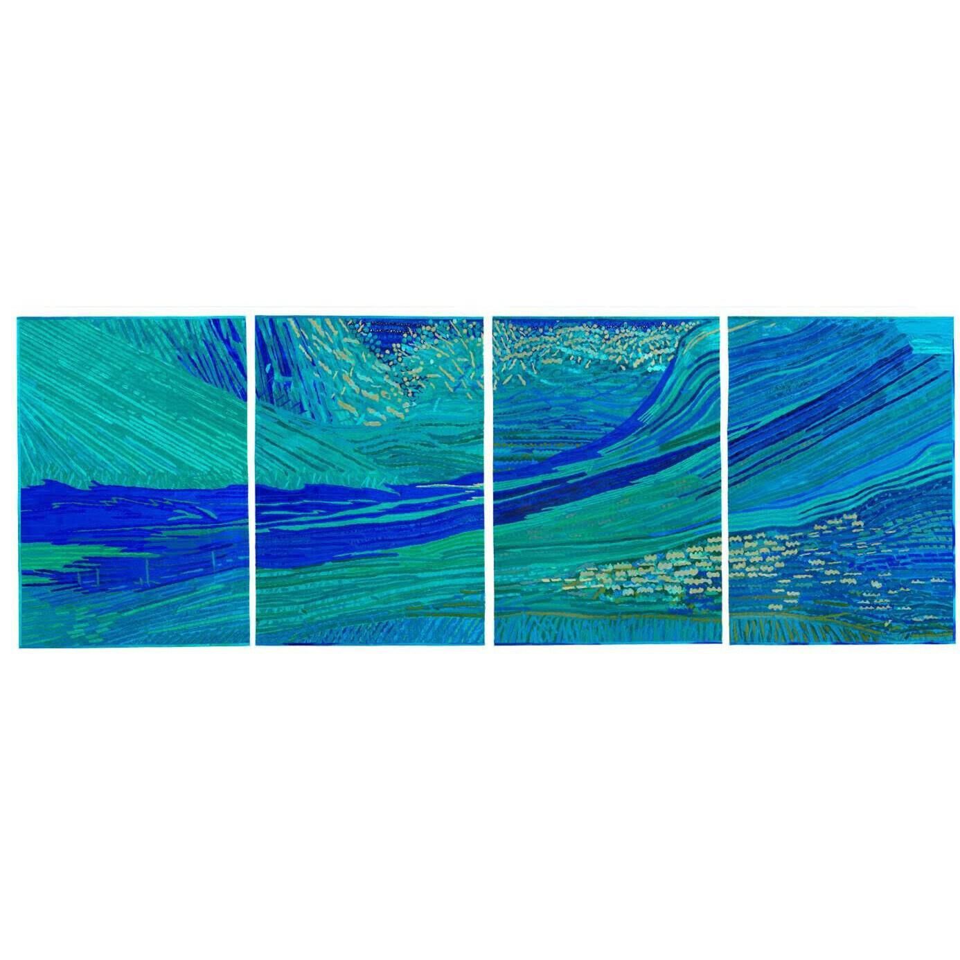 "Water is the driving force in my world. My work delivers messages—sometimes political and always passionate—about our water environment. The designs are generated using scientific research, various fiber techniques, bright colors, and hand stitching. I connect traditions such as dyeing with political comment; scientific details with text embedded in textile land and seascapes. I have also experimented with natural dyes and mordants, using indigo, and Australian flora as source materials.