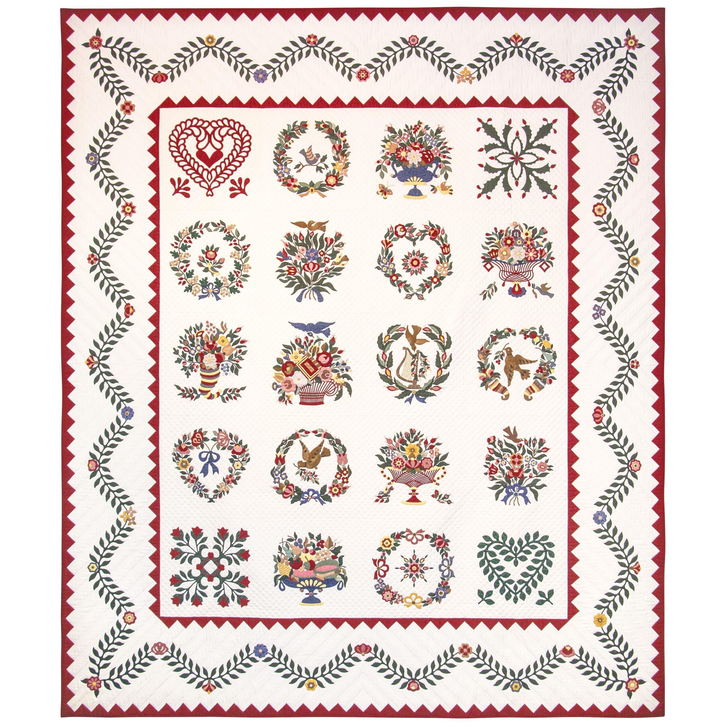 “This quilt was in the planning and making for several years because I always work on more than one quilt at a time. Using patterns from Elly Sienkiewicz’s books, and carefully studying pictures of antique Baltimore Album quilts in my many quilt books, I began my 'Baltimore Remembered.'