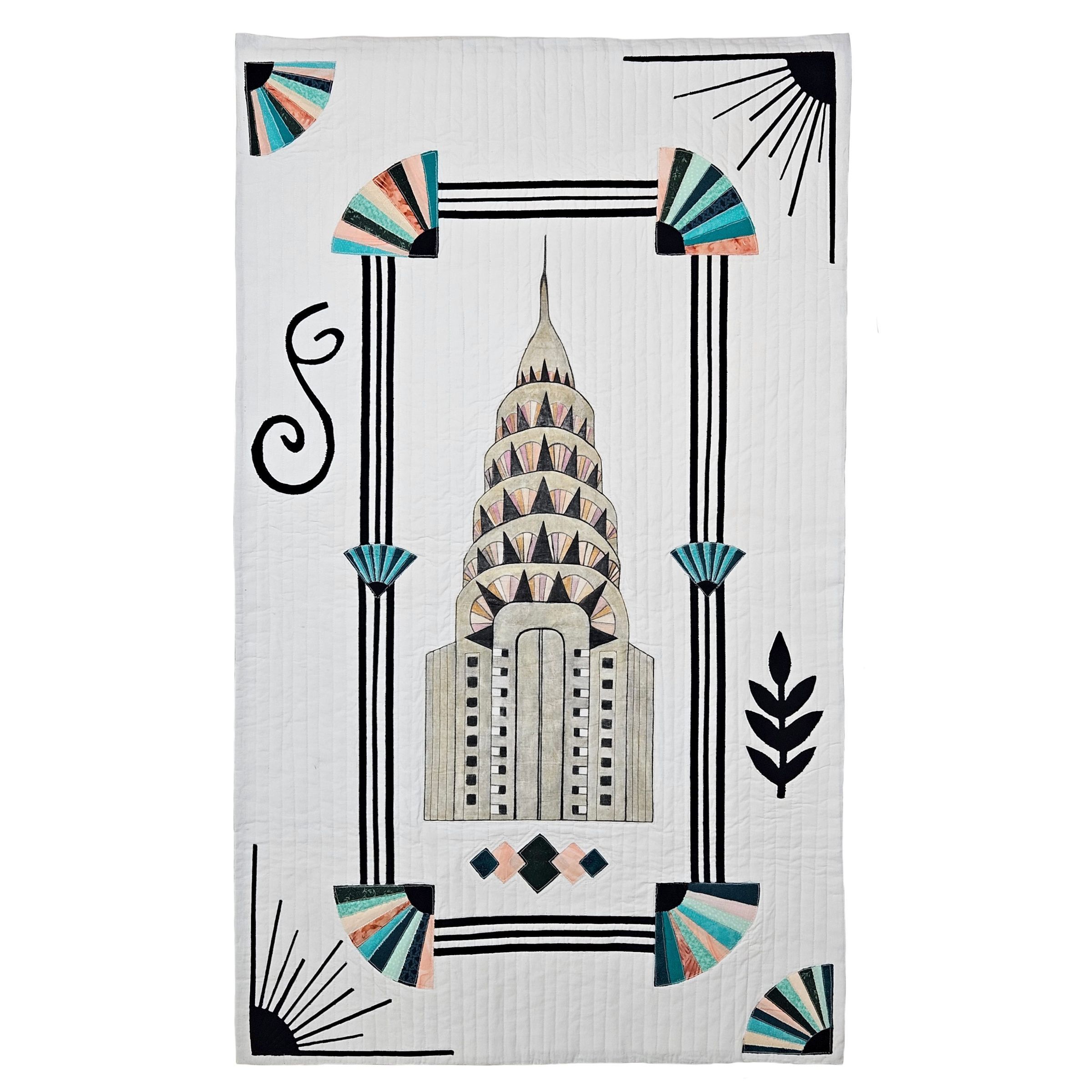 Raw edge appliqué, design drawn and colored with colored pencils, machine quiltingNote Type