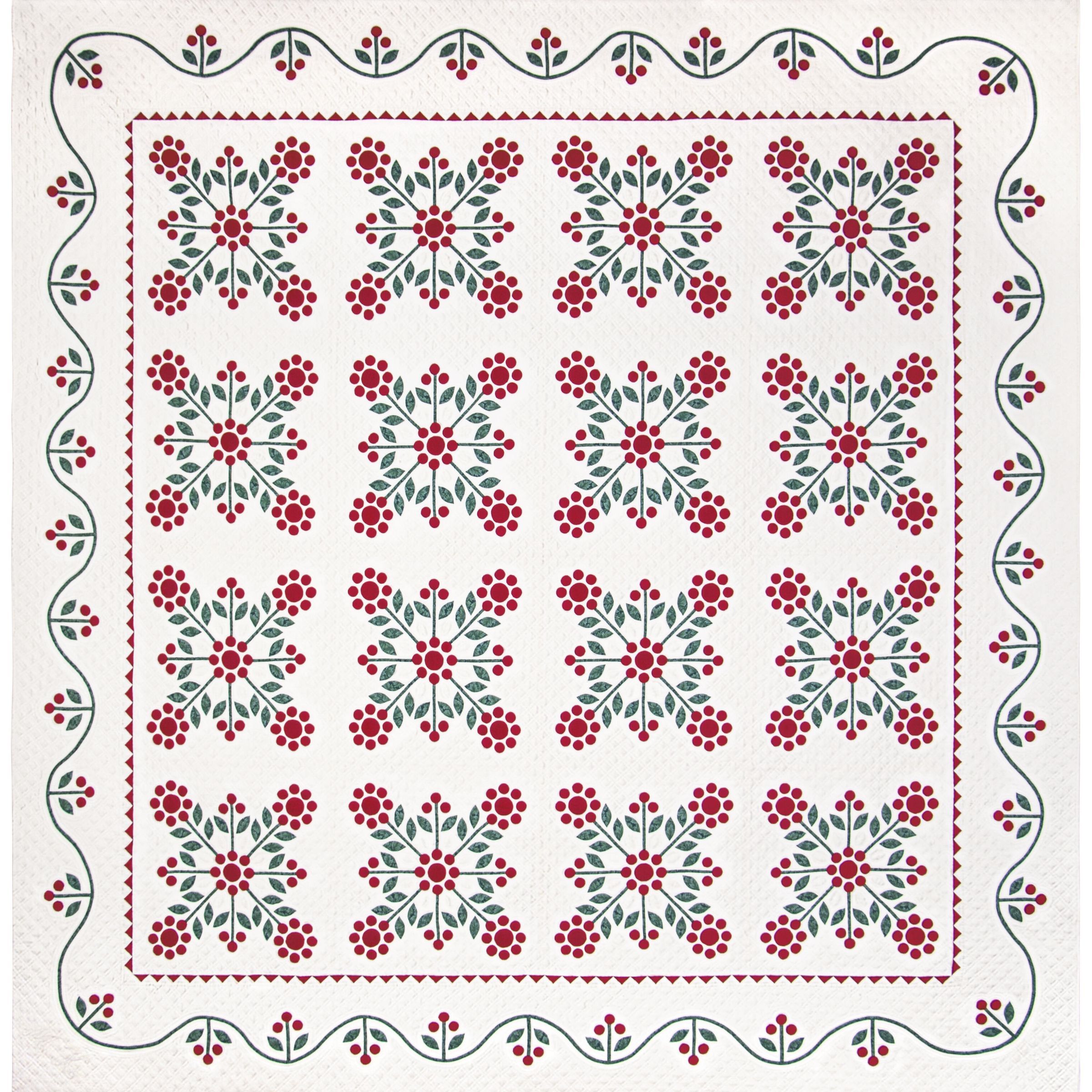 "This quilt was inspired by a trip to the grocery store. I can never pass the magazine racks without checking all the quilt publications. In one I found an antique Cherry Rose being used as a background for a display of antiques and was ready to begin a new project."