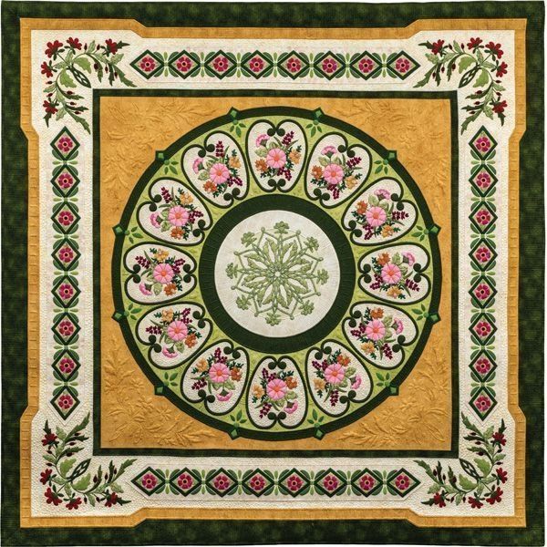 While designing this quilt, Laurie wanted a lot of machine appliqué, so she designed the quilt in a way to complete small areas that could then be attached to the background. She loved trying to do 12 matching bouquets, which was a challenge she really enjoyed.Label