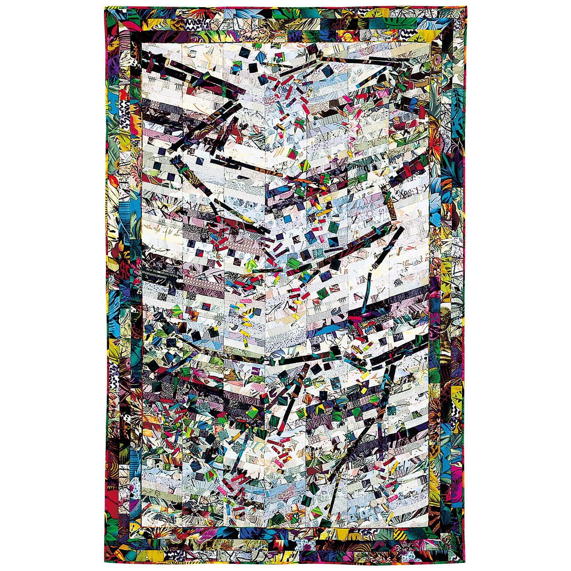 “Freedom’s Cascade was inspired by the fall of the Berlin Wall. The angular branches against the neutral background are reminiscent of the struggle for change, while the confetti-like flowers express the joy felt when the change was accomplished.”