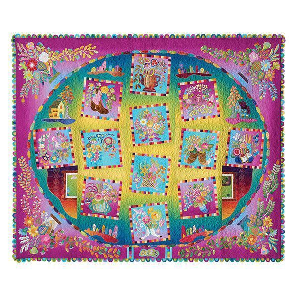 "Embroidery has been added to the traditional Baltimore Album to make the appliqué stand out. Look for the hidden chameleon and praying mantis. Even the sparrows that came to the balcony joined in!"
