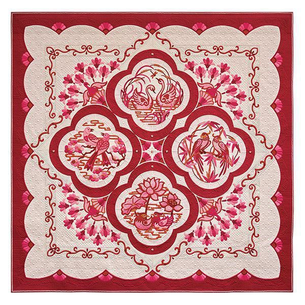 "My quilt, Serenity, slowly emerged during this past dark and dreadful year. Pairs of birds, calm and safe at rest, are in shades of red which, in my culture, represents future hope and happiness. Along with a touch of whimsy, see if you can find my goldfish. I want to extend these same wishes of hope and happiness to everyone."