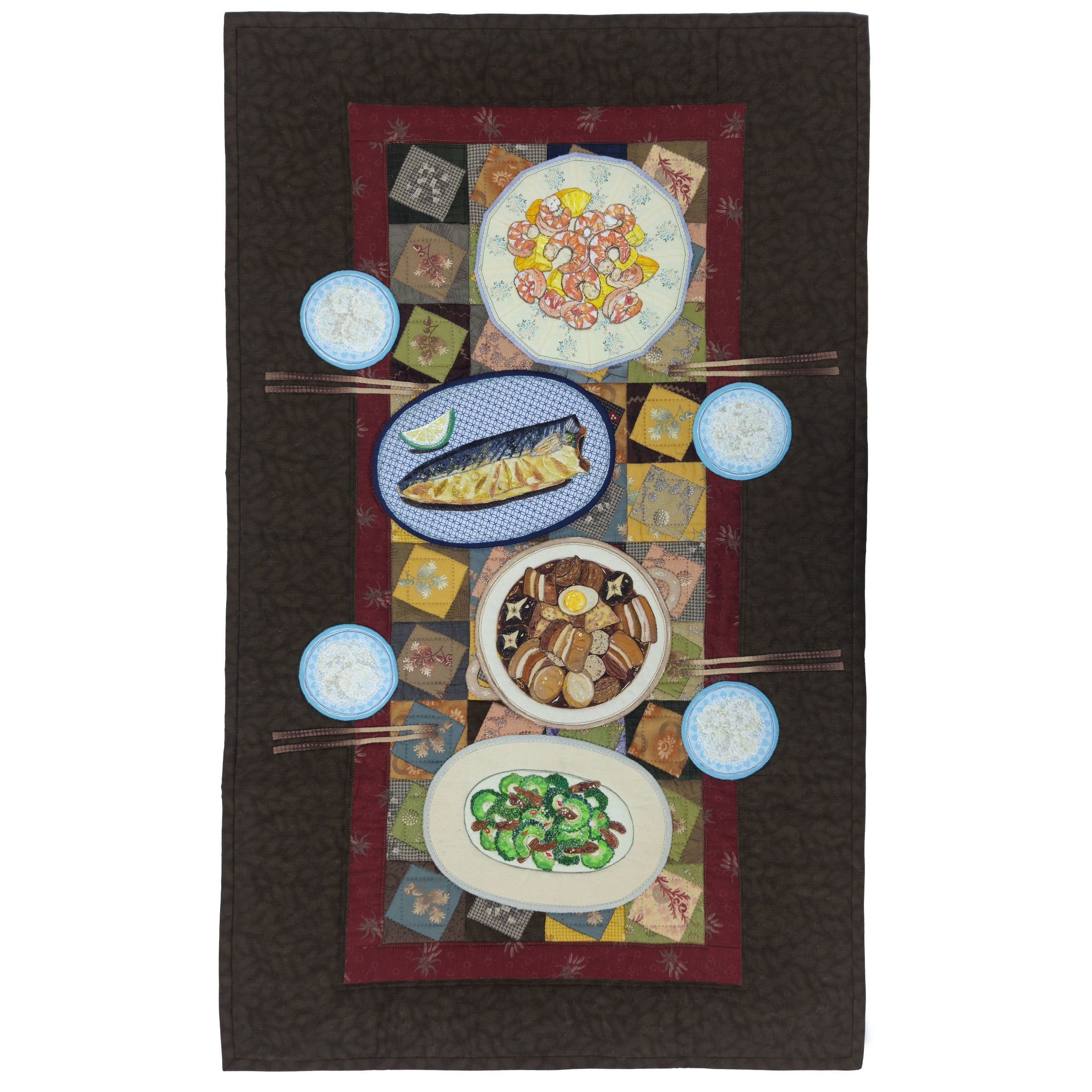"This work presents a faithful portrayal of my family’s dinner table and an evening meal at home. After a long day, my sons, returning from school, and my husband, coming home from work, all look forward to gathering around the table. With the same quiet anticipation, I prepared four home-cooked dishes—freshly peeled shrimp, grilled fish, braised pork, and bitter melon—served with steaming rice. Through this ordinary meal, I hope to convey the warmth, care, and shared joy found in everyday family life."