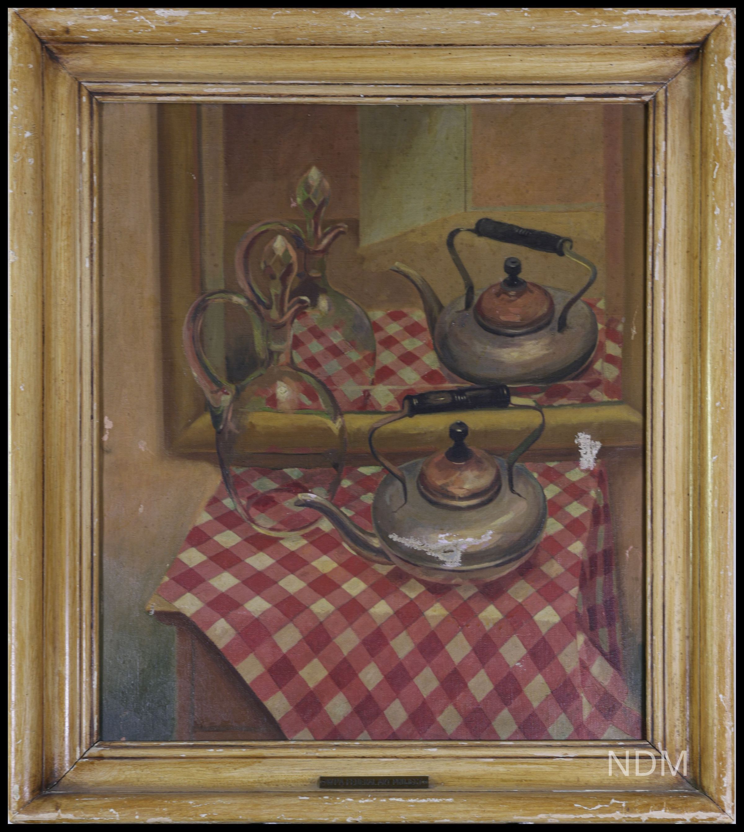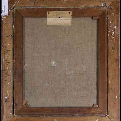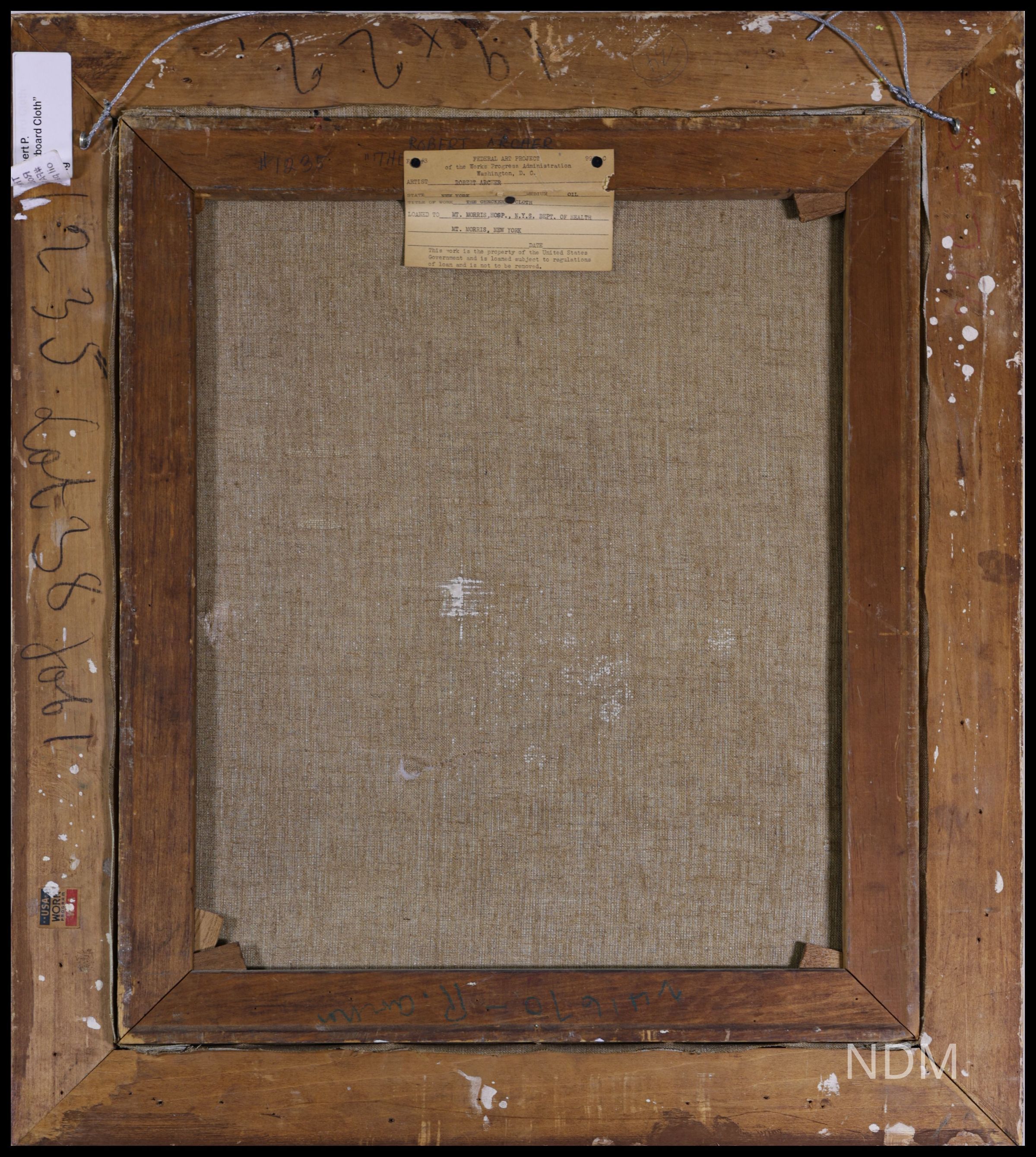 3 cracks lower right corner, 9 chips lower middle center/lower left middle/upper left middle/lower corners, 6 scratches right edges throughout, 5 holes middle lower right corner/lower middle left corner, fading/wooded canvas frame pressing through, upper middle leftRecommendations