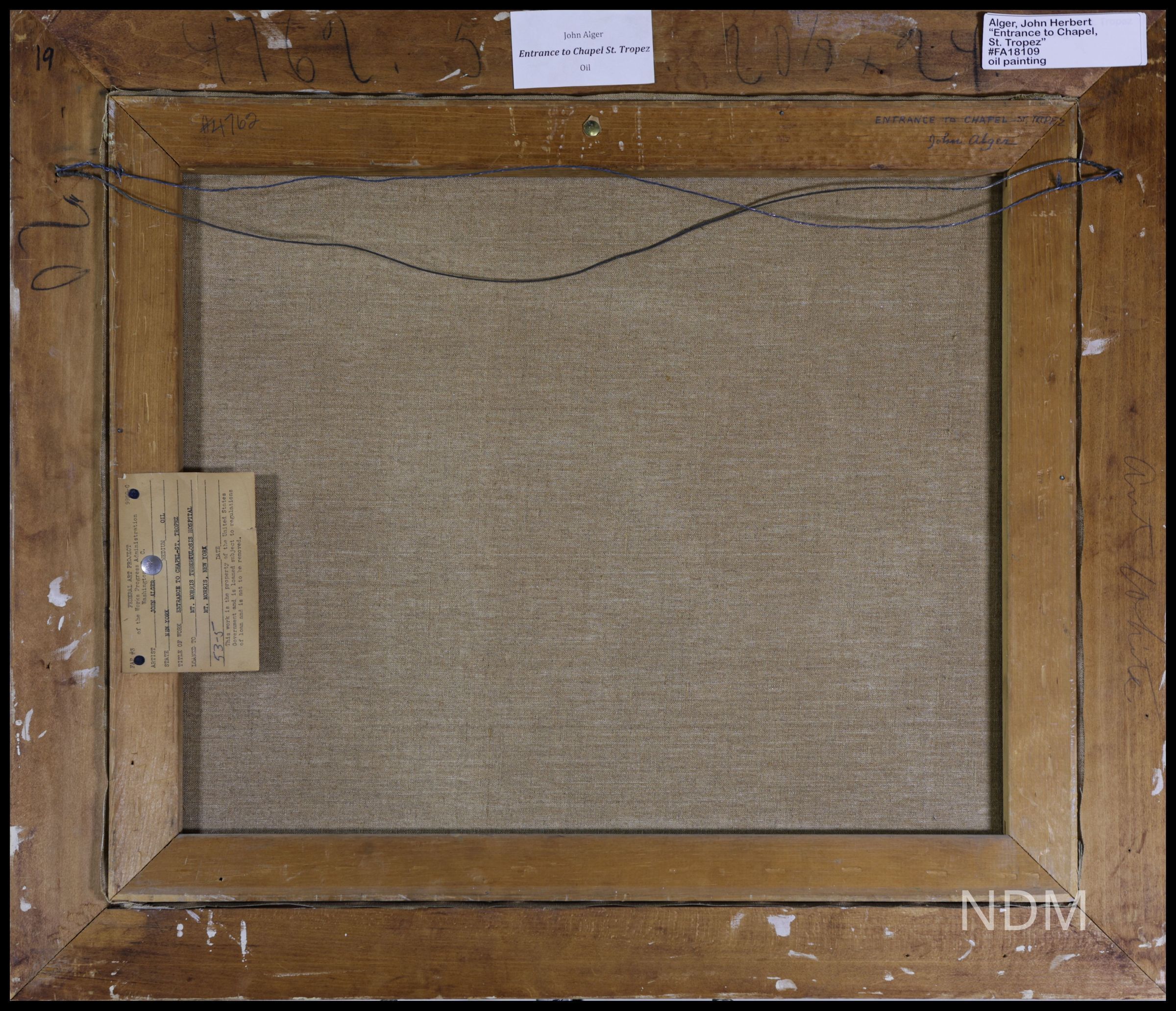 Created under the Works Progress Administration’s Federal Art Project (1930s–1940s), this collection of easel paintings was originally installed at the Mount Morris Tuberculosis Sanitorium in Livingston County, New York. Following the sanitorium’s closure in 1970, the artworks were abandoned and remained in storage until their rediscovery decades later. Now preserved and exhibited by the Genesee Valley Council on the Arts (GVCA), the collection is housed at the New Deal Museum in Mount Morris. Current efforts include digitization, high-resolution photography, and the creation of an online archive to ensure long-term public access and research availability.General Notes
