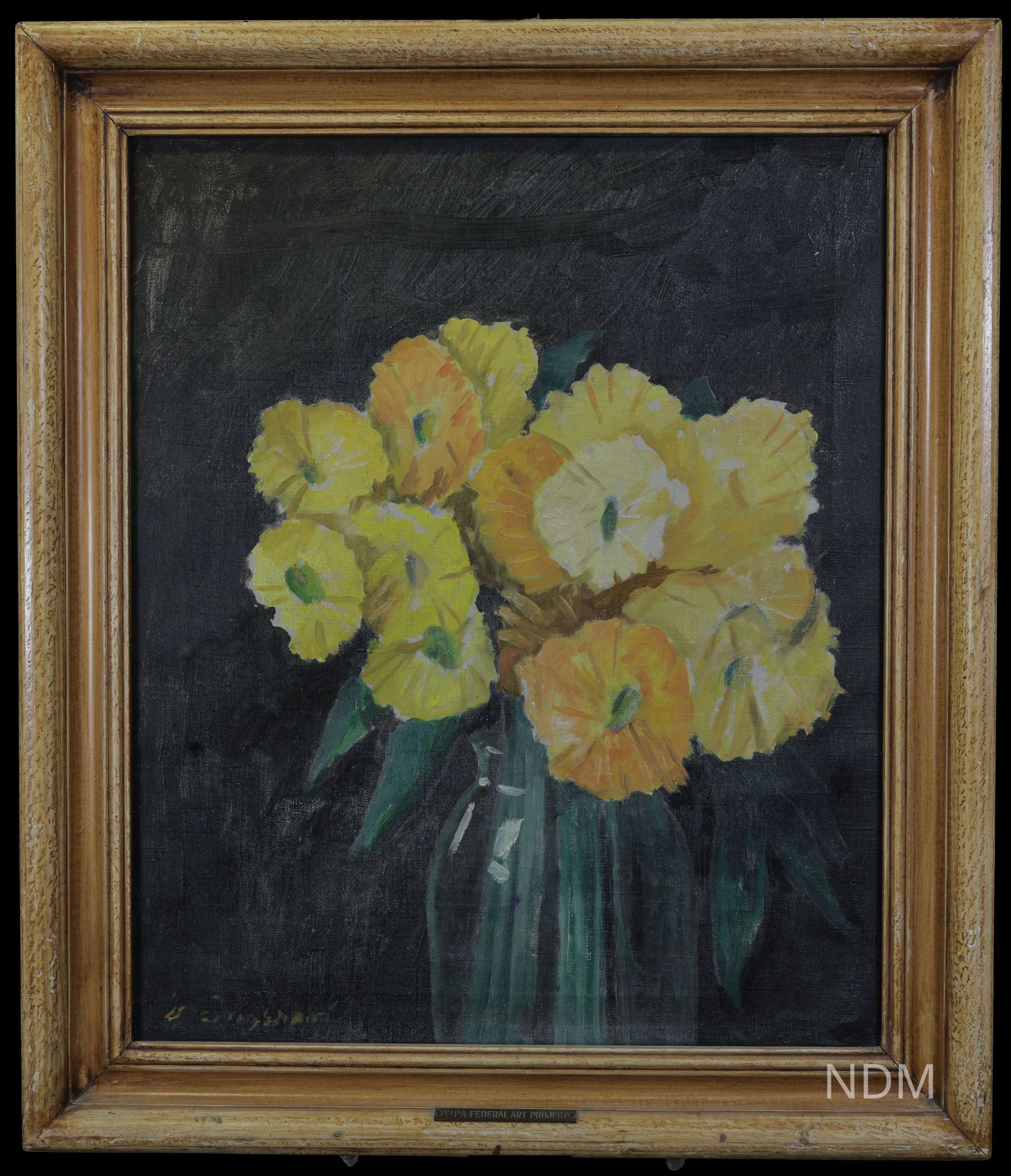 Created under the Works Progress Administration’s Federal Art Project (1930s–1940s), this collection of easel paintings was originally installed at the Mount Morris Tuberculosis Sanitorium in Livingston County, New York. Following the sanitorium’s closure in 1970, the artworks were abandoned and remained in storage until their rediscovery decades later. Now preserved and exhibited by the Genesee Valley Council on the Arts (GVCA), the collection is housed at the New Deal Museum in Mount Morris. Current efforts include digitization, high-resolution photography, and the creation of an online archive to ensure long-term public access and research availability.General Notes