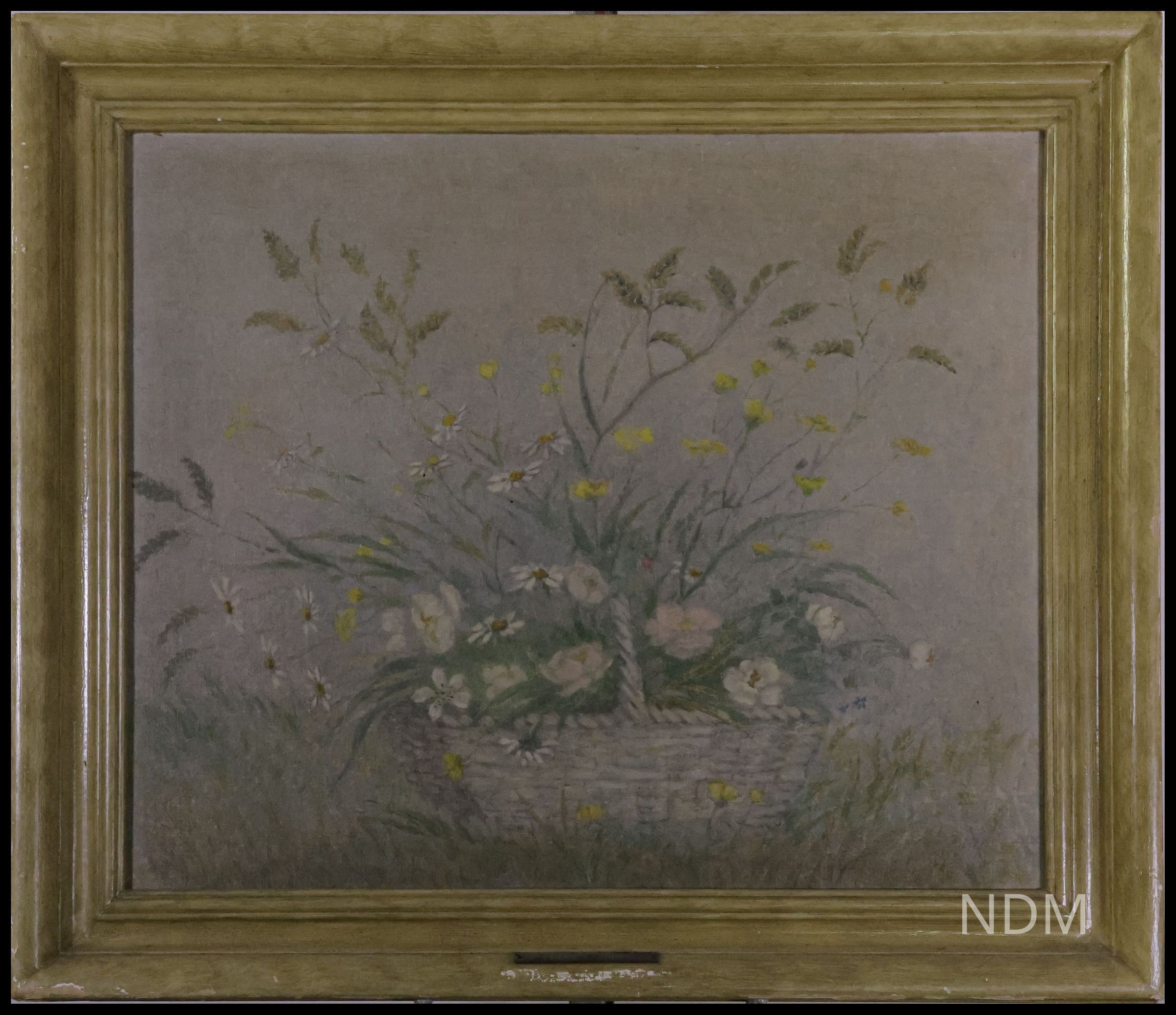 The setting of this composition blurs the genres of En plein air landscapes and still lifes; there is no "background" to situate the basket of flowers in space, but the grass underneath them departs from carefully artificial indoor settings. A few buttercups growing in the grass echo those already collected for Hartl's basket. Hovering in space, the stems sometimes are so delicate that their blooms appear to be floating.Collection
