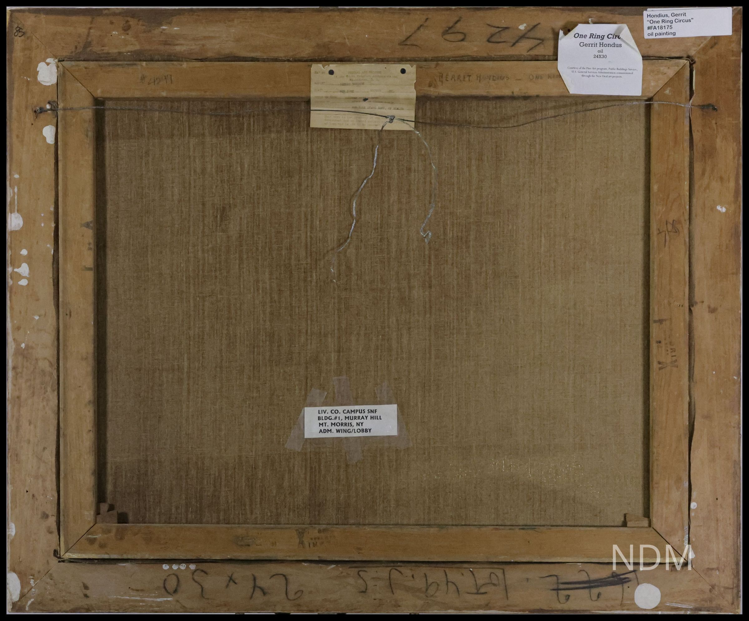 Created under the Works Progress Administration’s Federal Art Project (1930s–1940s), this collection of easel paintings was originally installed at the Mount Morris Tuberculosis Sanitorium in Livingston County, New York. Following the sanitorium’s closure in 1970, the artworks were abandoned and remained in storage until their rediscovery decades later. Now preserved and exhibited by the Genesee Valley Council on the Arts (GVCA), the collection is housed at the New Deal Museum in Mount Morris. Current efforts include digitization, high-resolution photography, and the creation of an online archive to ensure long-term public access and research availability.General Notes