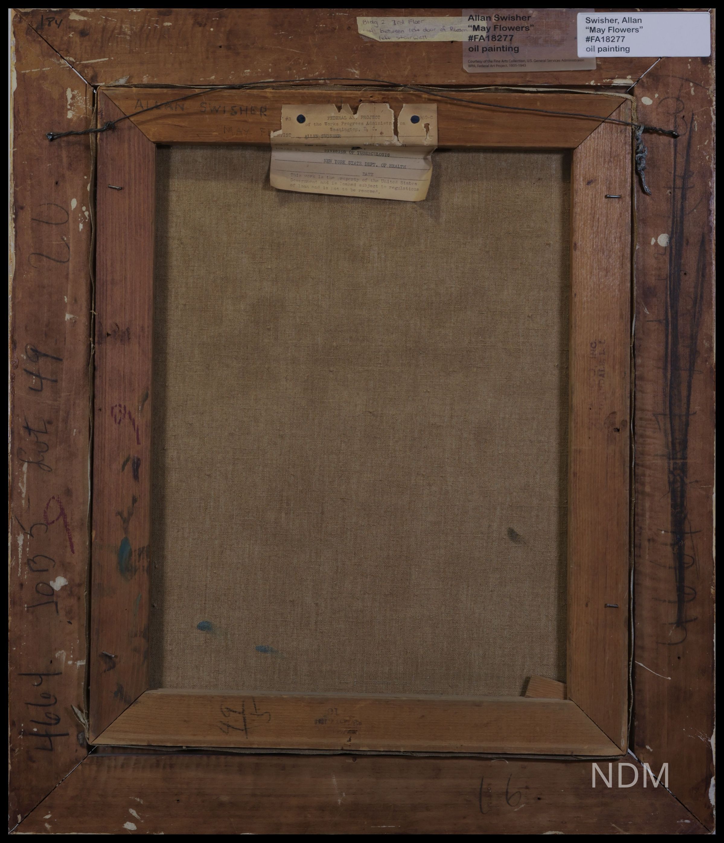 Created under the Works Progress Administration’s Federal Art Project (1930s–1940s), this collection of easel paintings was originally installed at the Mount Morris Tuberculosis Sanitorium in Livingston County, New York. Following the sanitorium’s closure in 1970, the artworks were abandoned and remained in storage until their rediscovery decades later. Now preserved and exhibited by the Genesee Valley Council on the Arts (GVCA), the collection is housed at the New Deal Museum in Mount Morris. Current efforts include digitization, high-resolution photography, and the creation of an online archive to ensure long-term public access and research availability.General Notes
