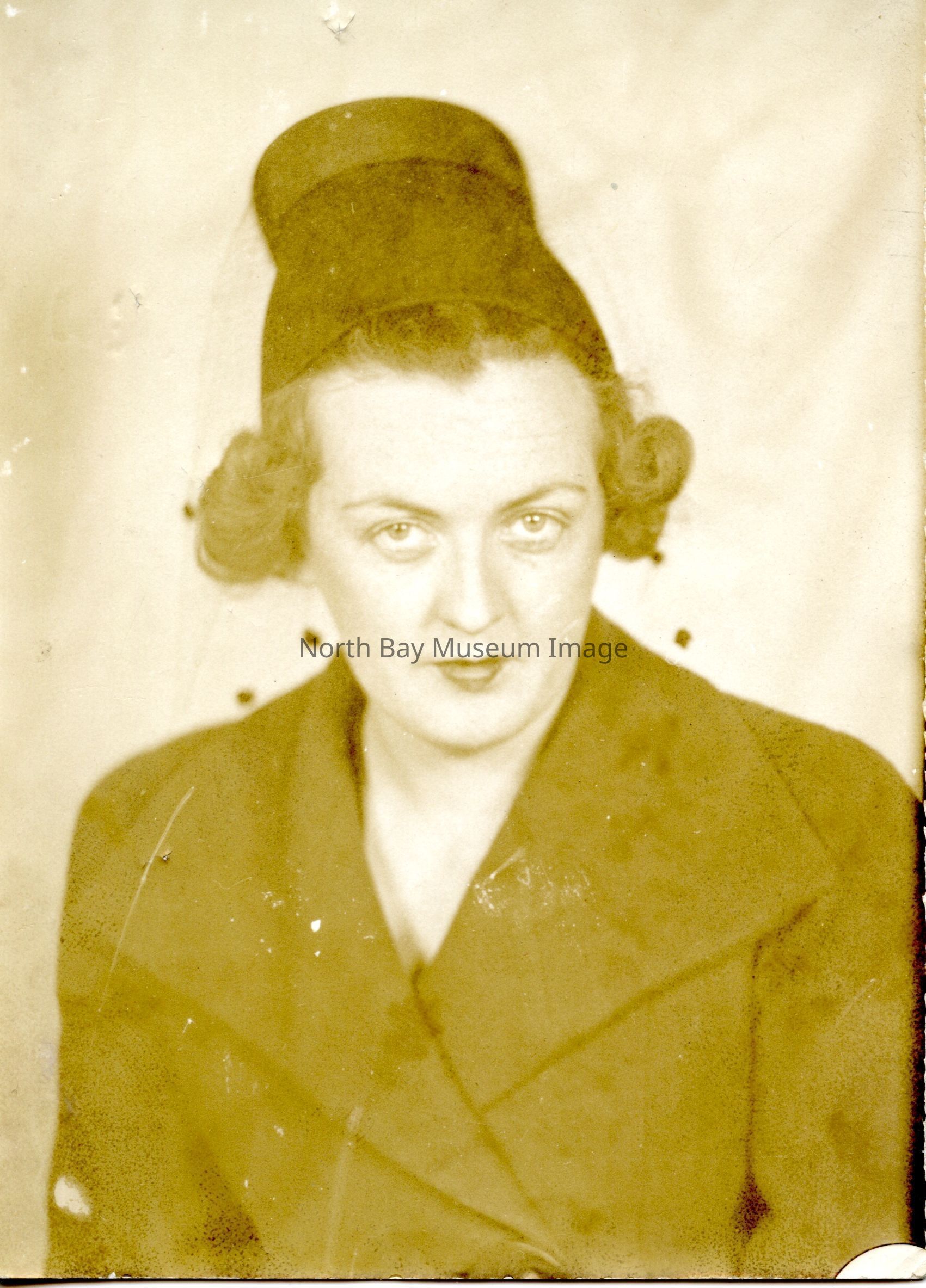 Photo of woman, friend or relative of Marjorie Wright, wearing veil and cap with jacket.
