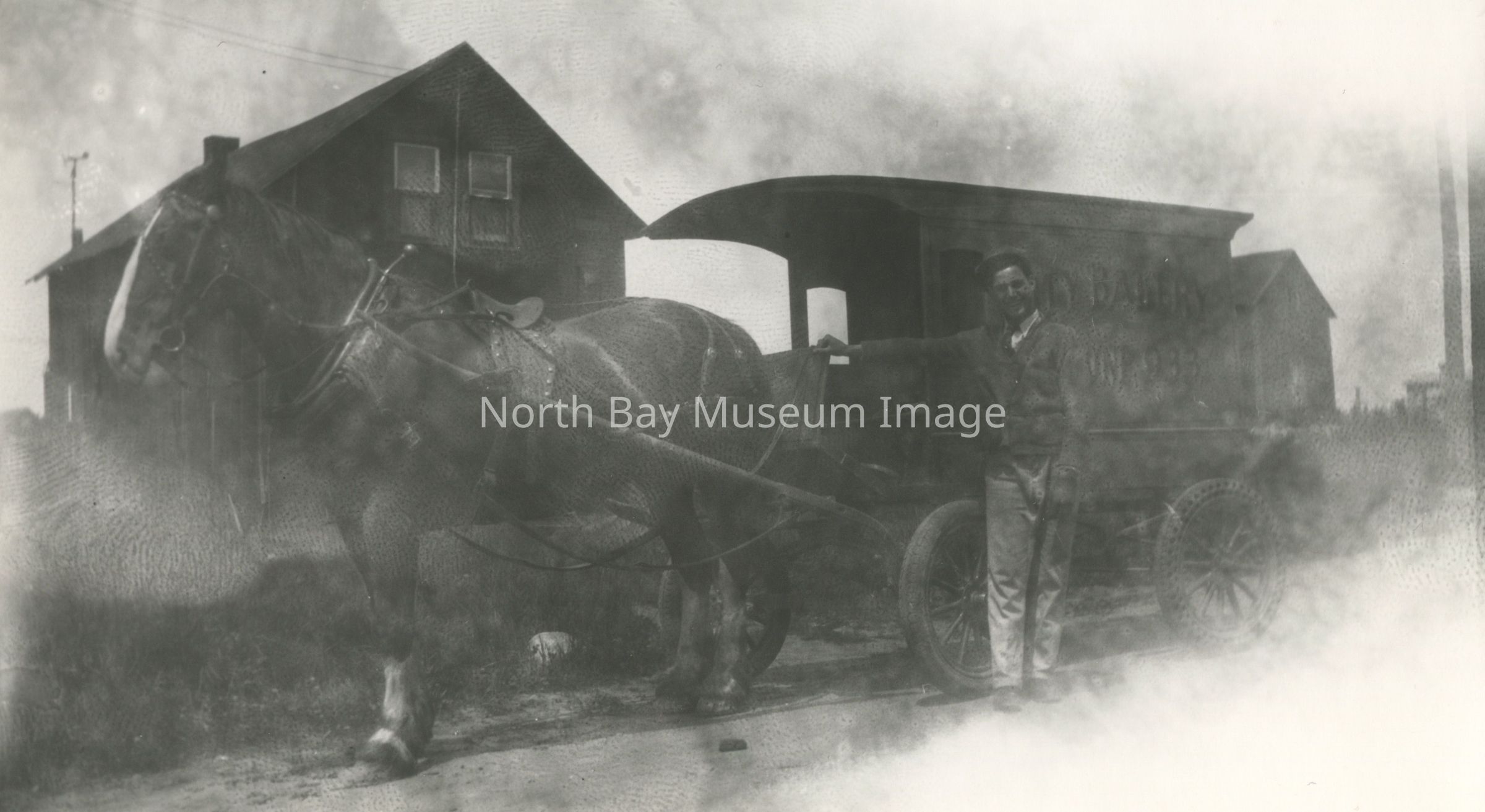 023.20.06e: Man with draft horse and truck marked Ba?ery.